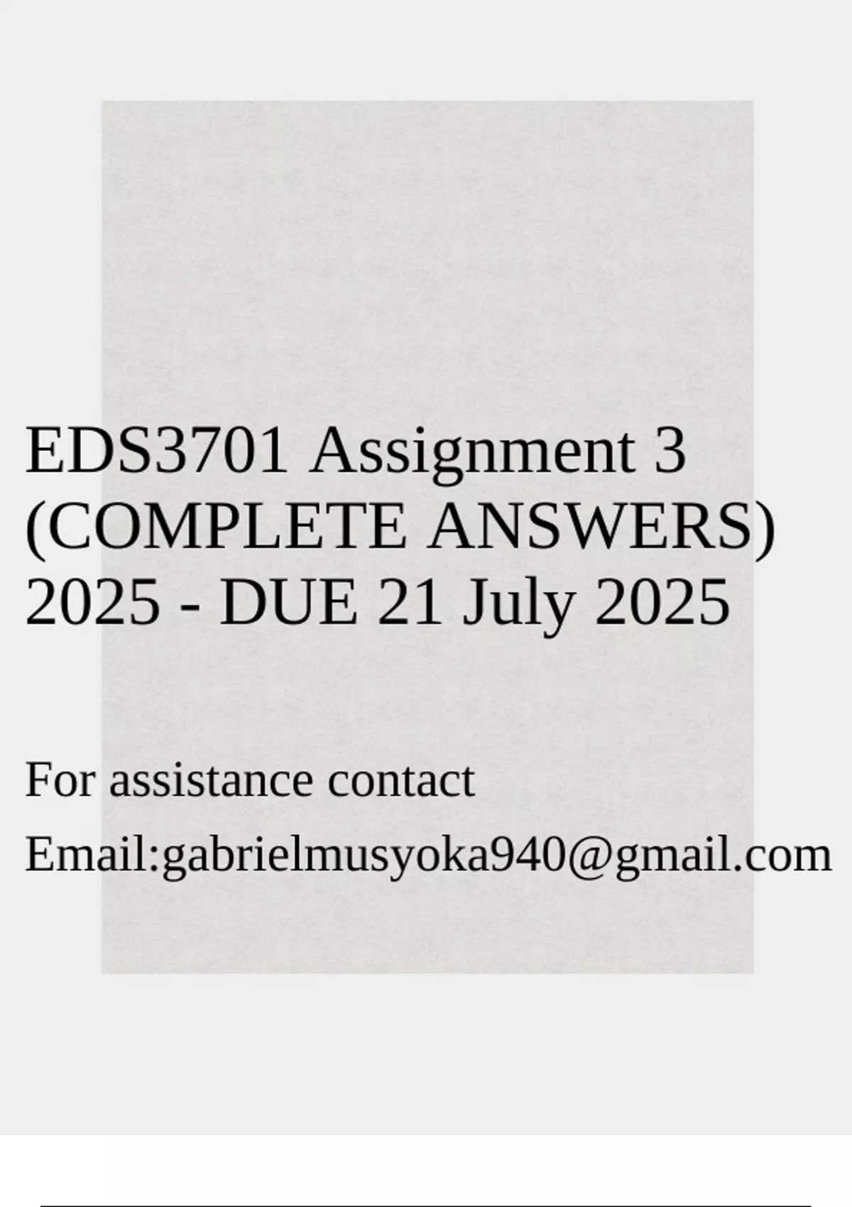 EDS3701 Assignment 3 (COMPLETE ANSWERS) 2025 - DUE 21 July 2025
