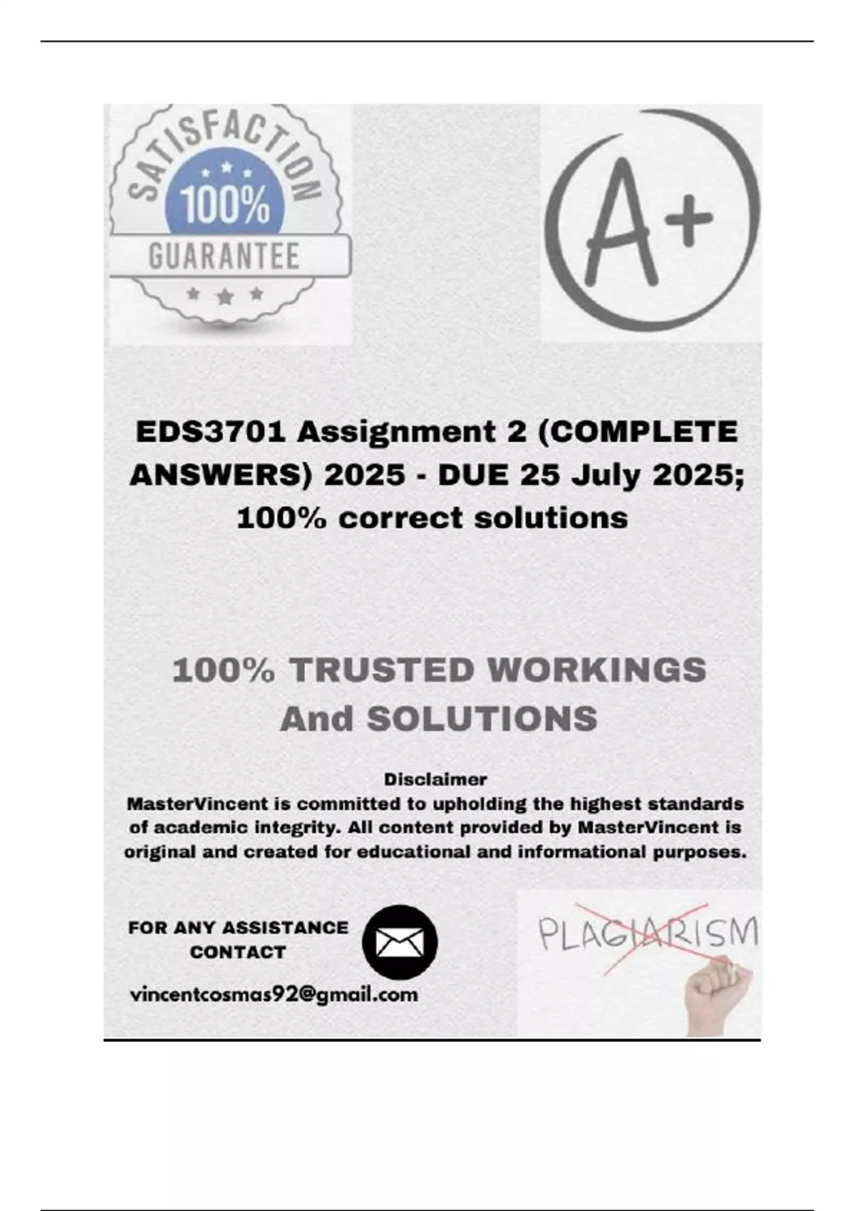 2025 - DUE 25 July 2025; 100% correct solutions and