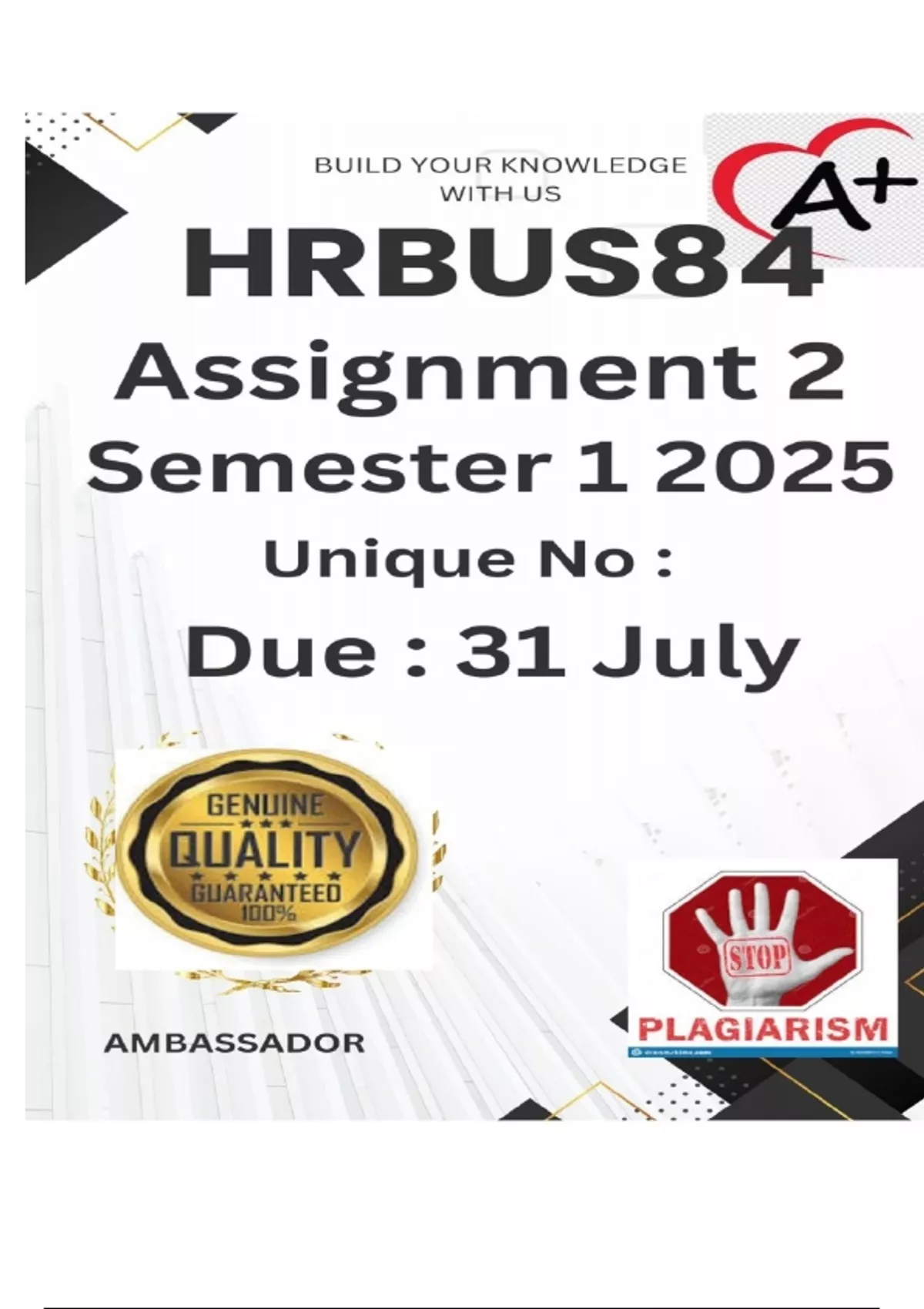 HRBUS84 Assignment 2 (LITERATURE REVIEW) Semester 1 2025 - DUE 31 July 2025; 100% TRUSTED Complete, trusted solutions and explanations.
