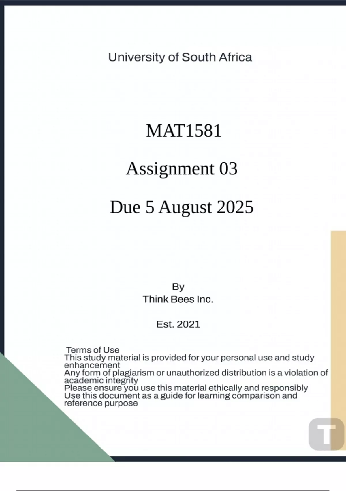 , MAT1581 Assignment 03 — Due: Tuesday, 5 August 2025