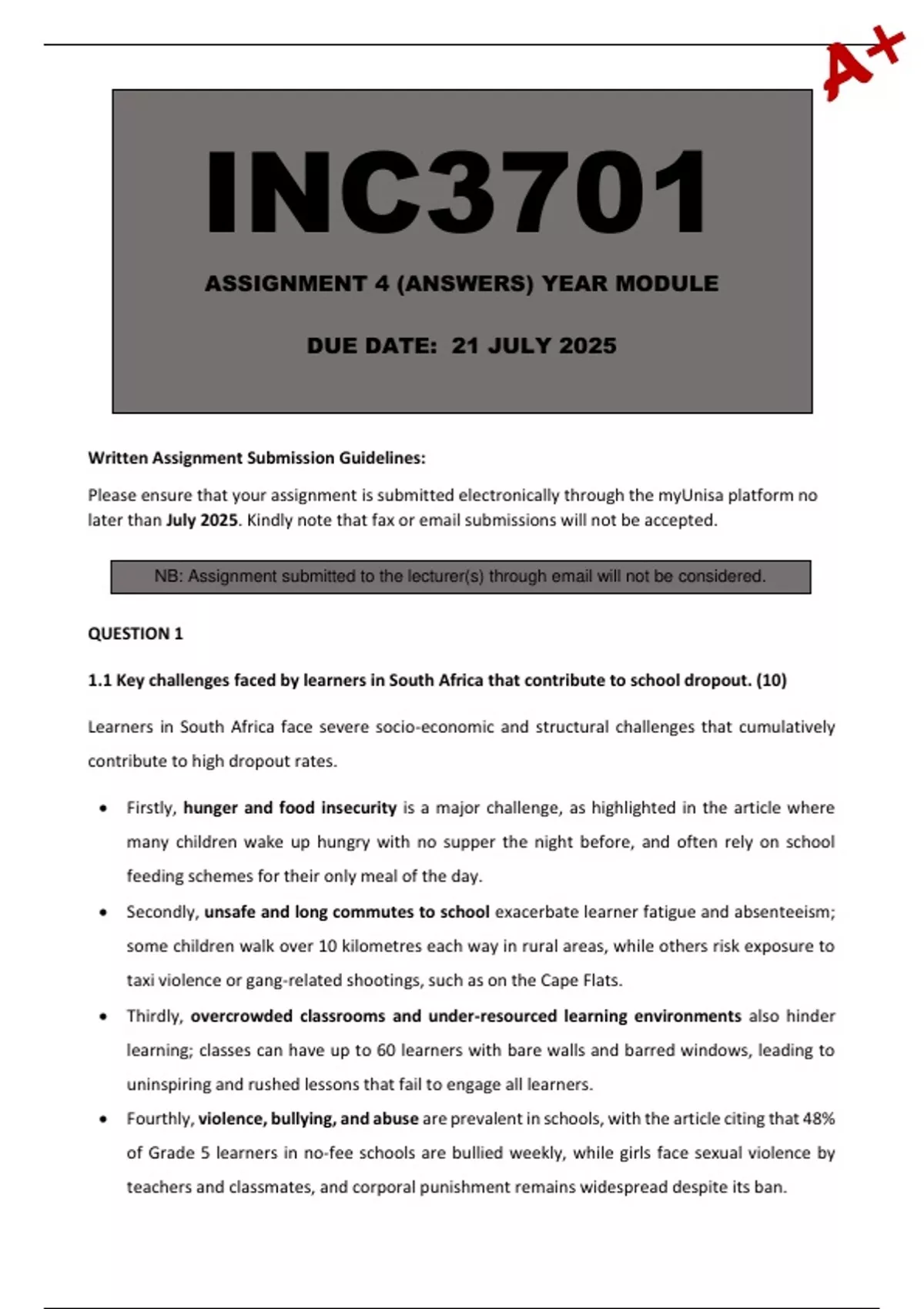 INC3701 Assignment 4 2025 | Complete Answers | Due 21 July 2025 Fully trusted solutions and clear explanations to support your success. - - - - AED3701 PED3701 CDE3701 INC3701 FMT3701 FLT3701 FPT3701 LSK3701 ESC3701 CUS3701 Tutor MNG3701 LPL4802 LJU4801 TAX3761 PVL3702 MAC3761 GGH2604 ISC3701 EDS3701 PVL3702