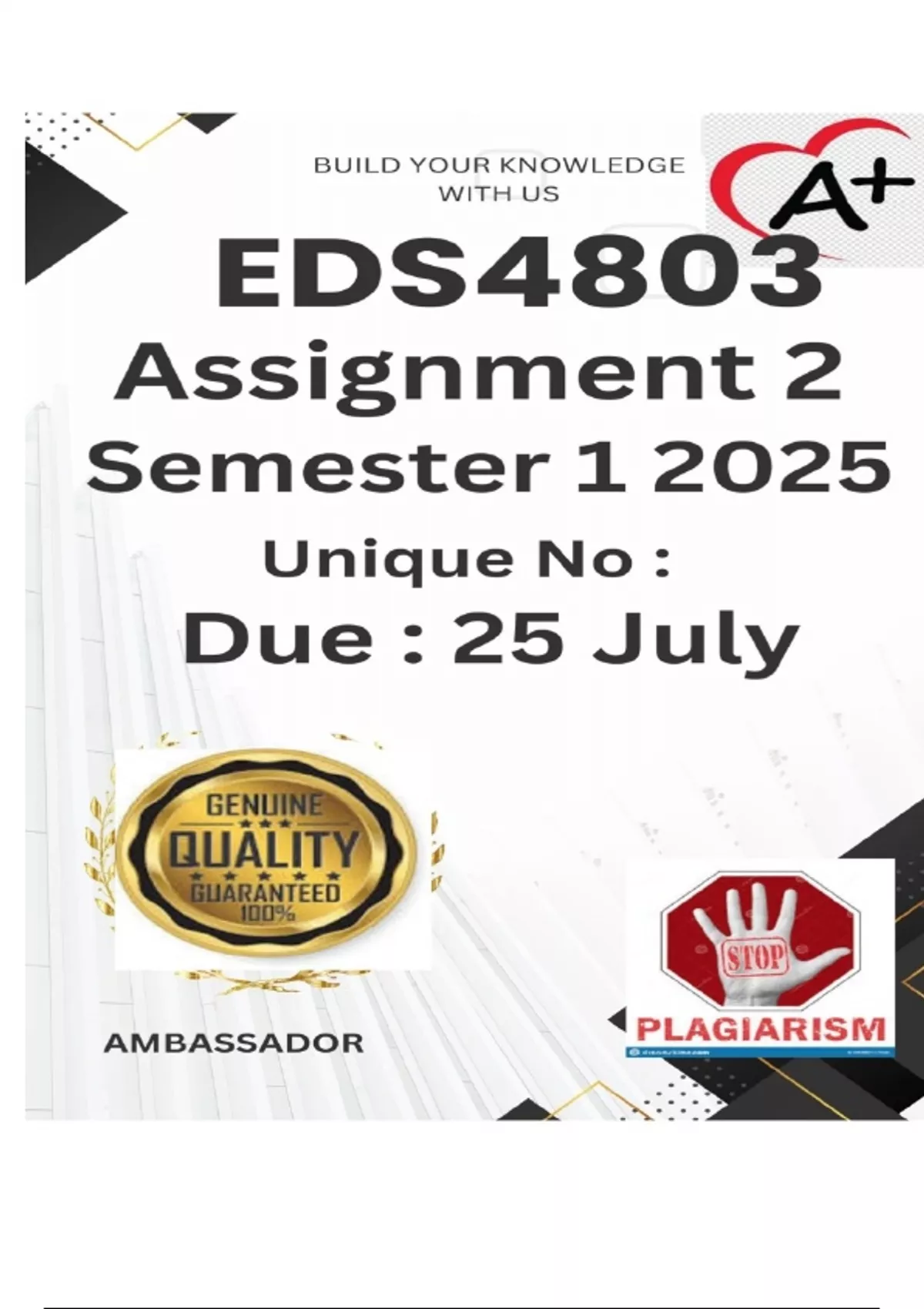 EDS4803 Assignment 2 (COMPLETE ANSWERS) Semester 1 2025 – DUE 25 July 2025