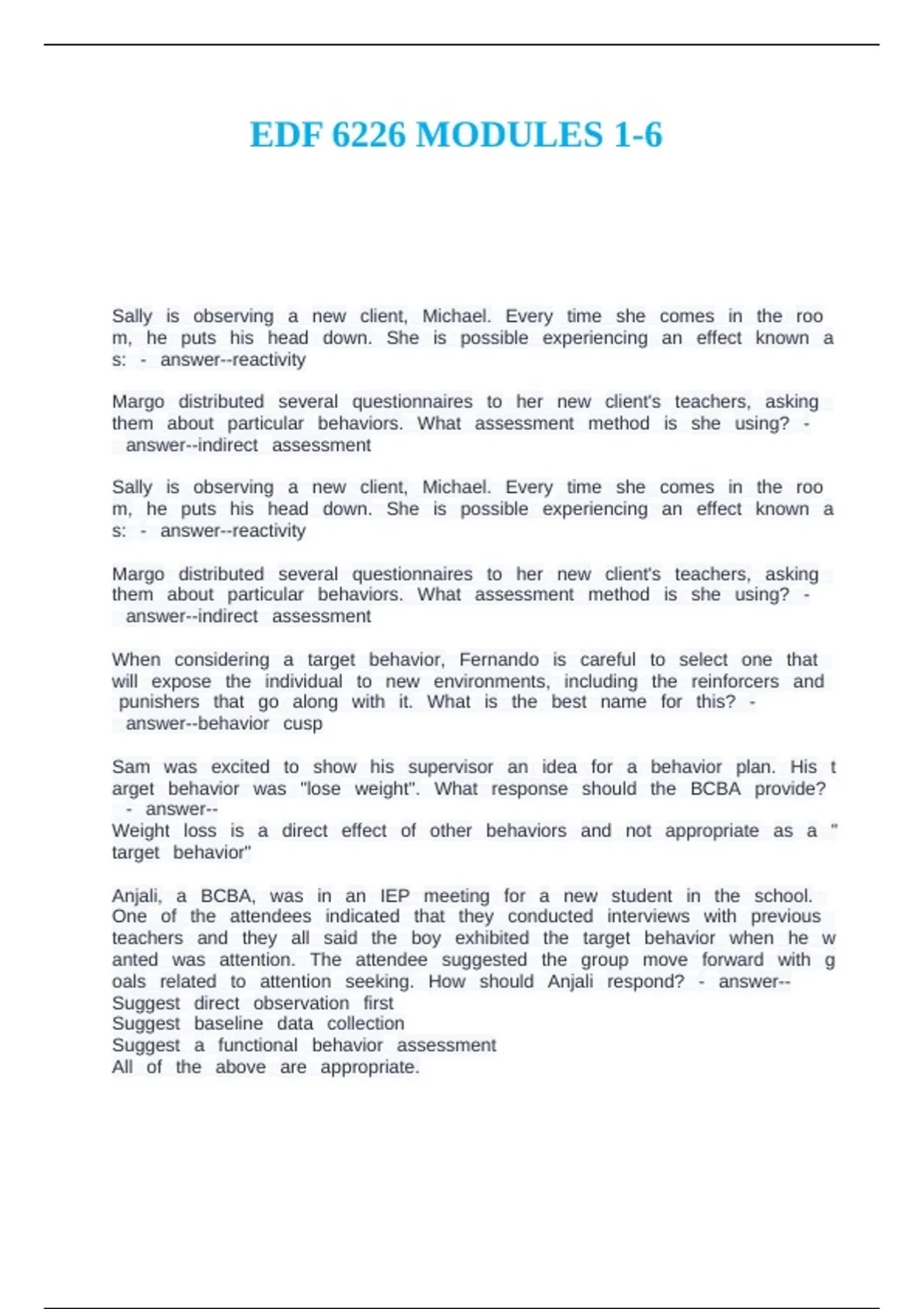 Exam of 6 pages for the course UWF EDF 6226 at UWF EDF 6226 (EDF 6226 MODULES 1)