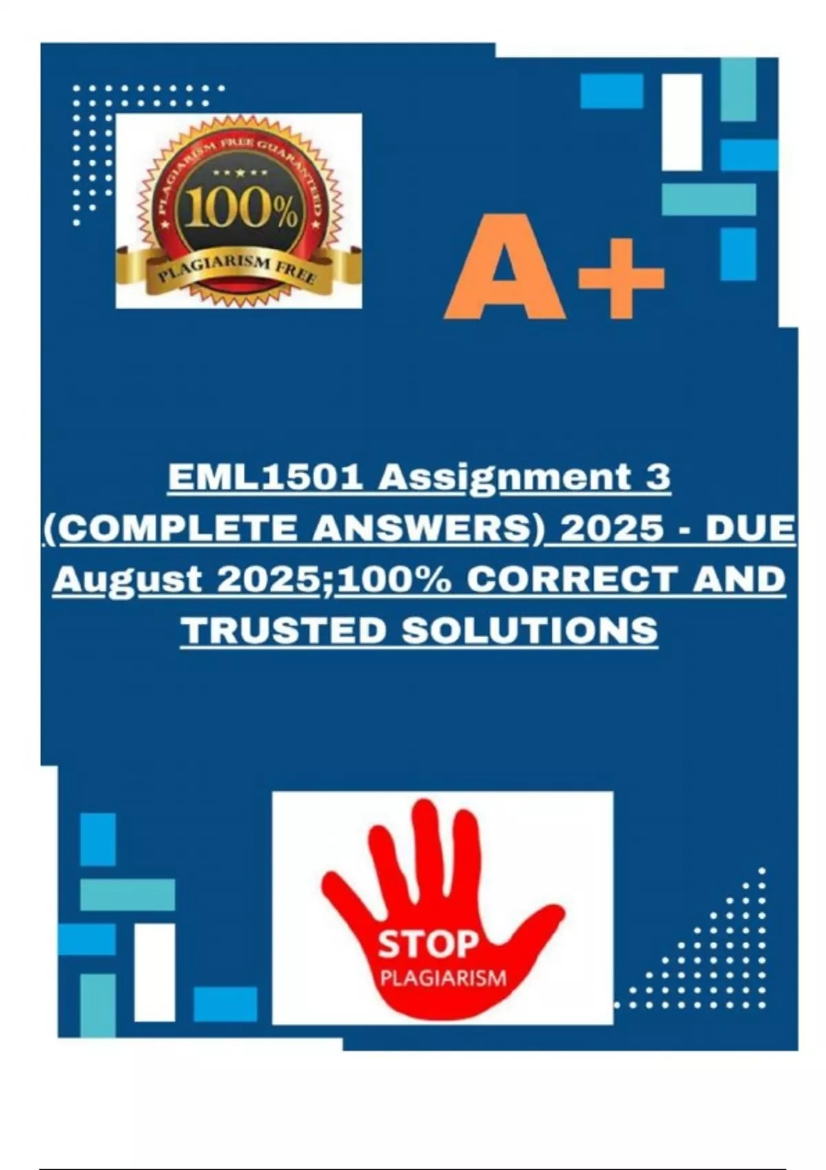 EML1501 Assignment 3 (COMPLETE ANSWERS) 2025 - DUE August 2025; 100% CORRECT AND TRUSTED SOLUTIONS