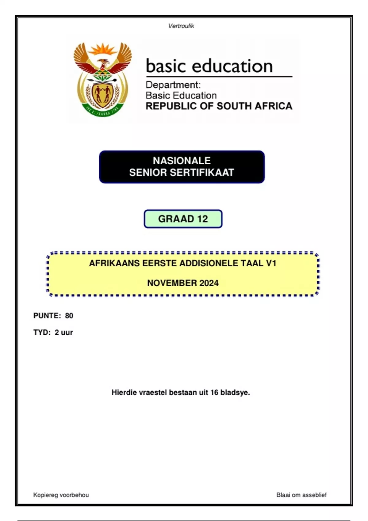 ,Afrikaans Eerste Addisionele Taal/V1 2 DBE/November 2024