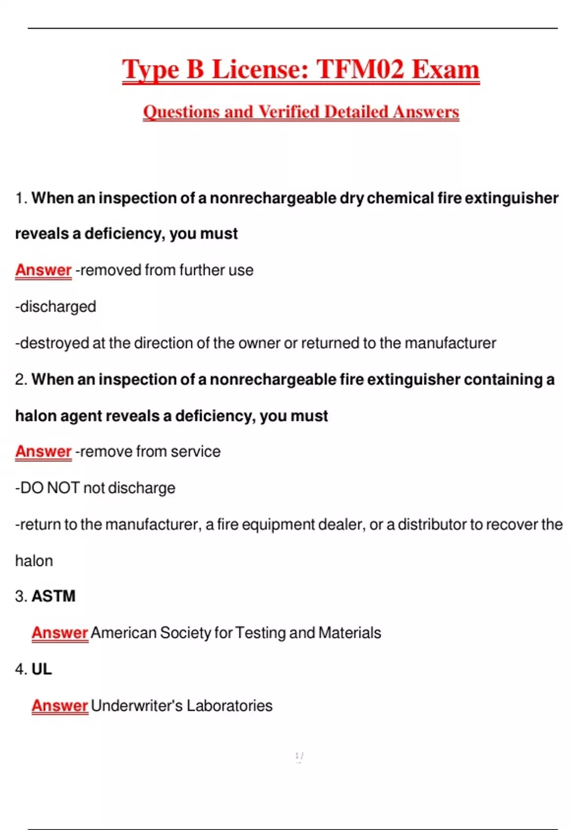 Answer -thorough examination intended to give assurance that a fire extinguisher