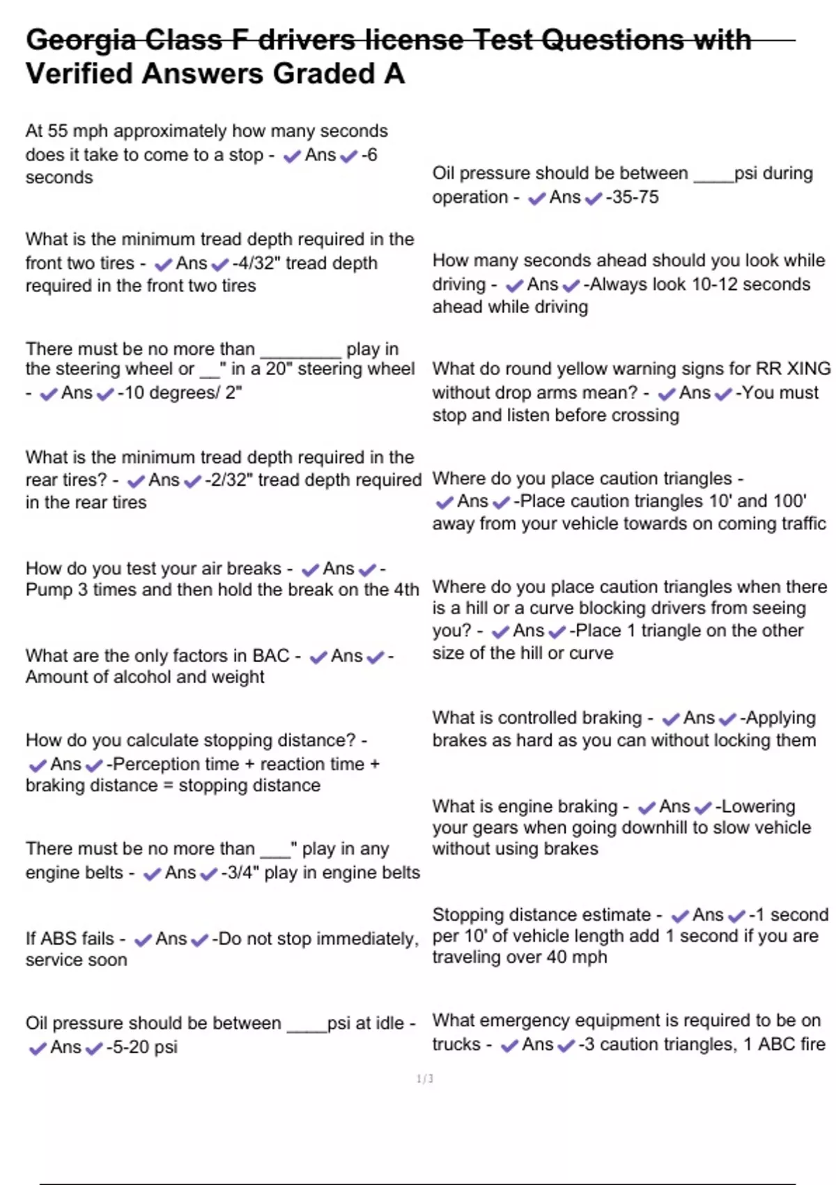 Georgia Class F drivers license Test Questions with Verified Answers Graded A