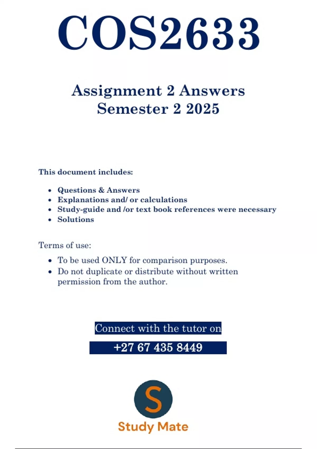 COS2633 Assignment 2 (COMPLETE ANSWERS) Semester 2 2025 - Pass With Distinction Guaranteed