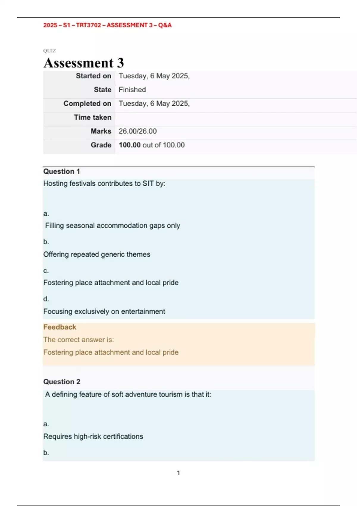 , 2025 – S1 – TRT3702 – ASSESSMENT 3 – Q&A