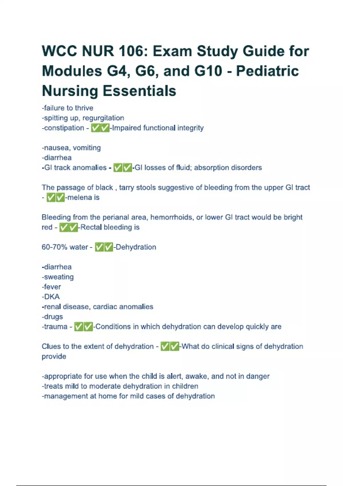 WCC NUR 106_ Exam Study Guide for Modules G4, G6, and G10 - Pediatric Nursing Essentials
