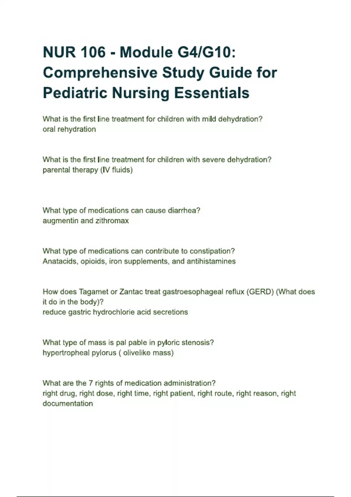 NUR 106 - Module G4_G10_ Comprehensive Study Guide for Pediatric Nursing Essentials