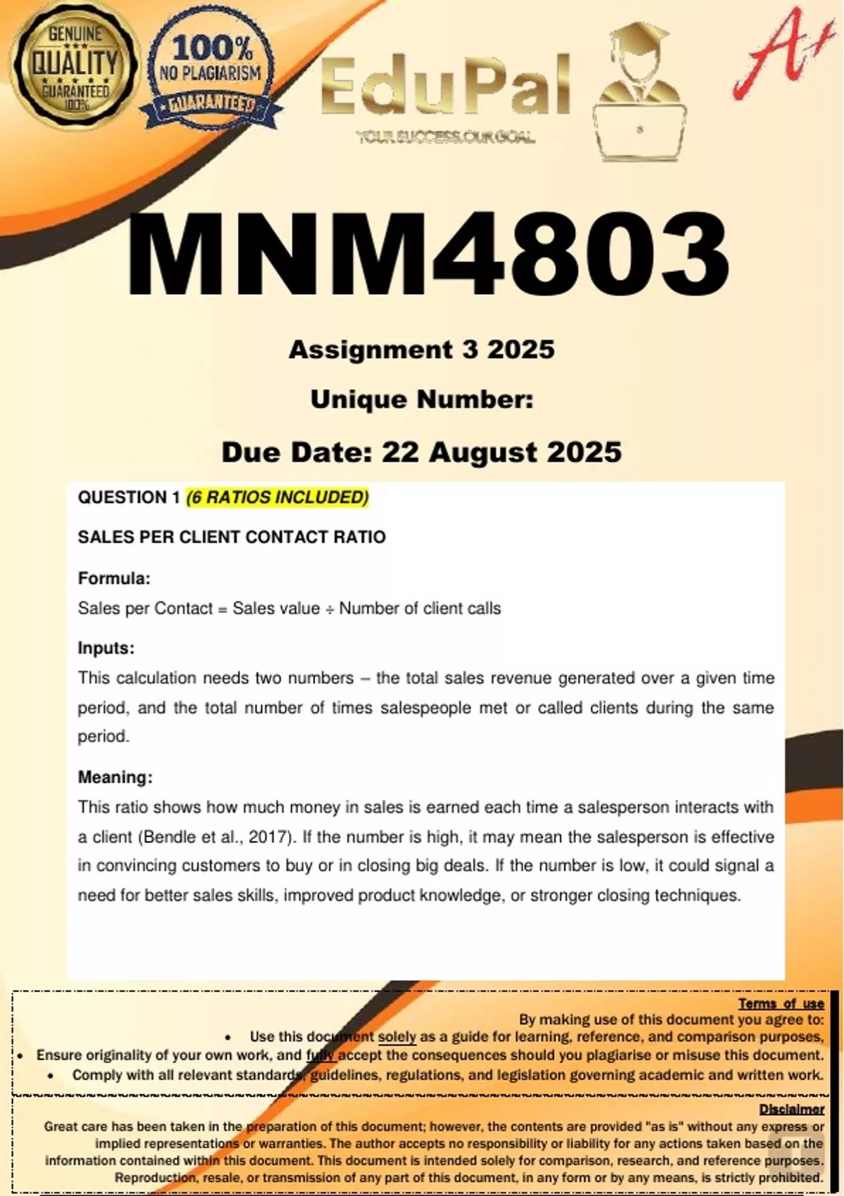 a client (Bendle et al., 2017). If the number is high, it may mean the salesperson is effective