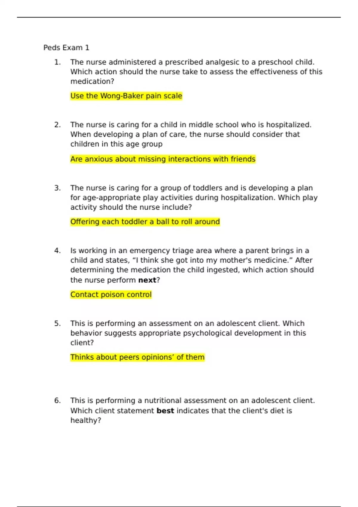 3. The nurse is caring for a group of toddlers and is developing a plan