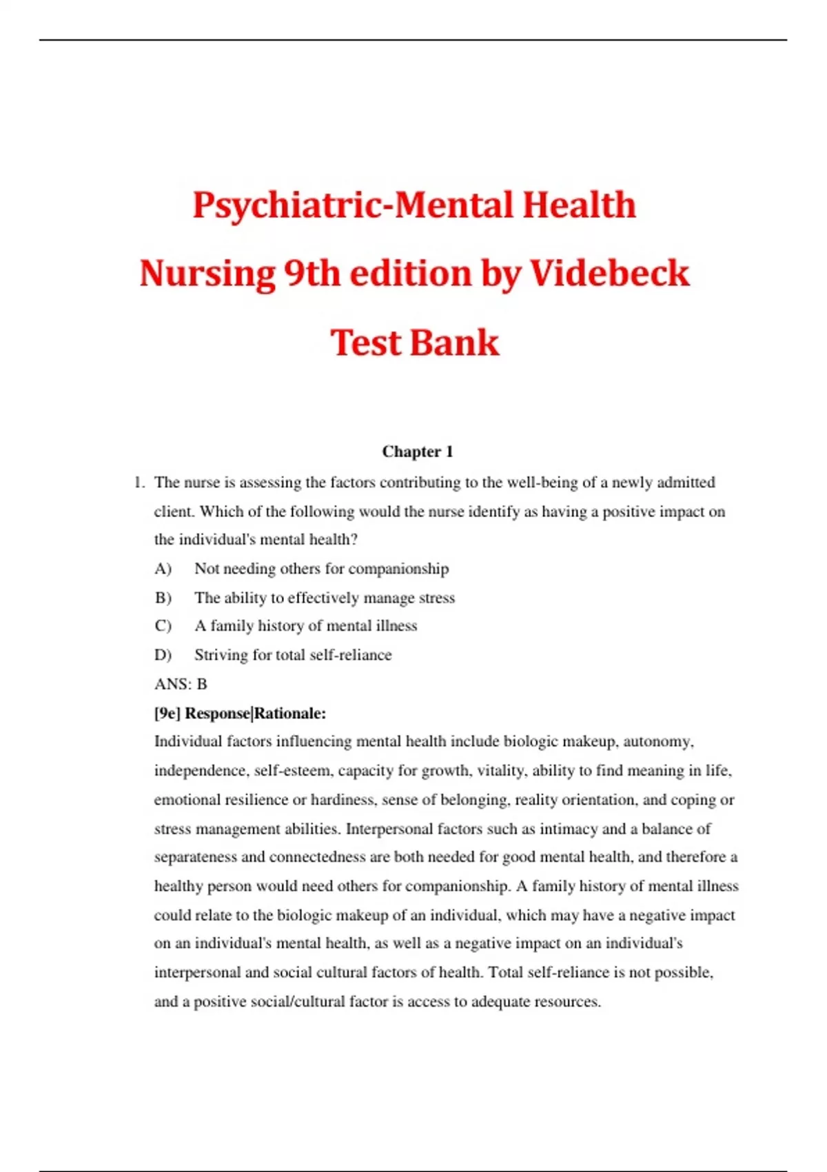 Nursing 9th edition by Videbeck