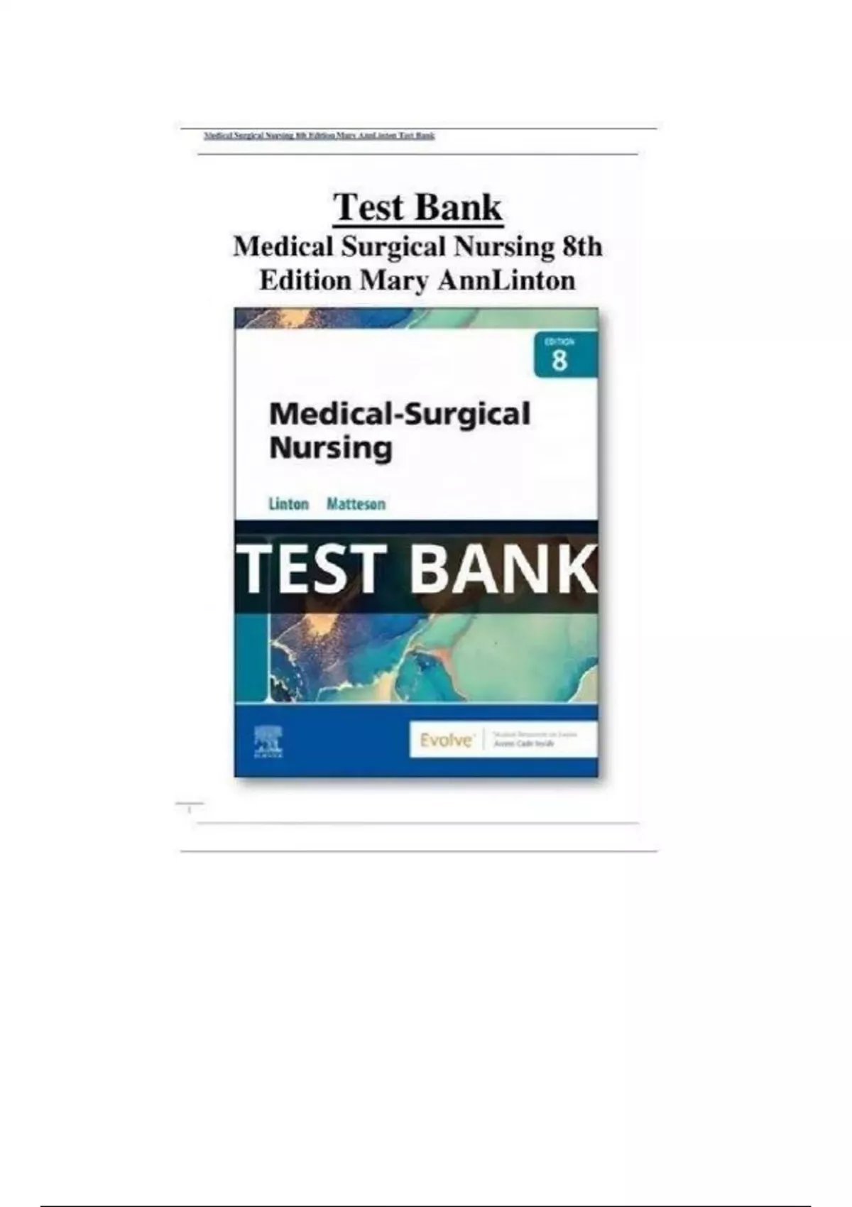 Download the complete Test Bank Medical-Surgical Nursing 8th Edition by Adrianne Dill Linton and Mary Ann Matteson with solution, updated for 2025/2026, featuring comprehensive questions on medical-surgical nursing concepts, patient care, and clinical scenarios to enhance learning and exam success.
