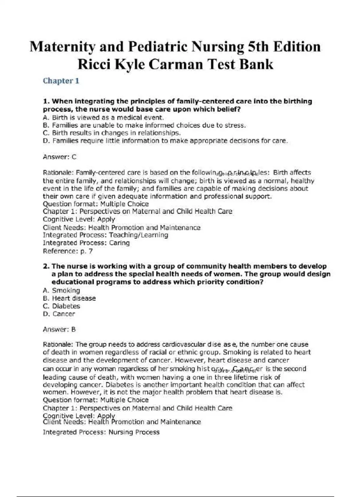 Download the complete Test Bank Maternity and Pediatric Nursing 5th Edition by Susan Ricci and Theresa Kyle covering all chapters with solution, updated for 2025/2026, featuring essential maternal and pediatric nursing concepts, clinical case questions, and detailed explanations to support nursing students in mastering care and excelling in exams.