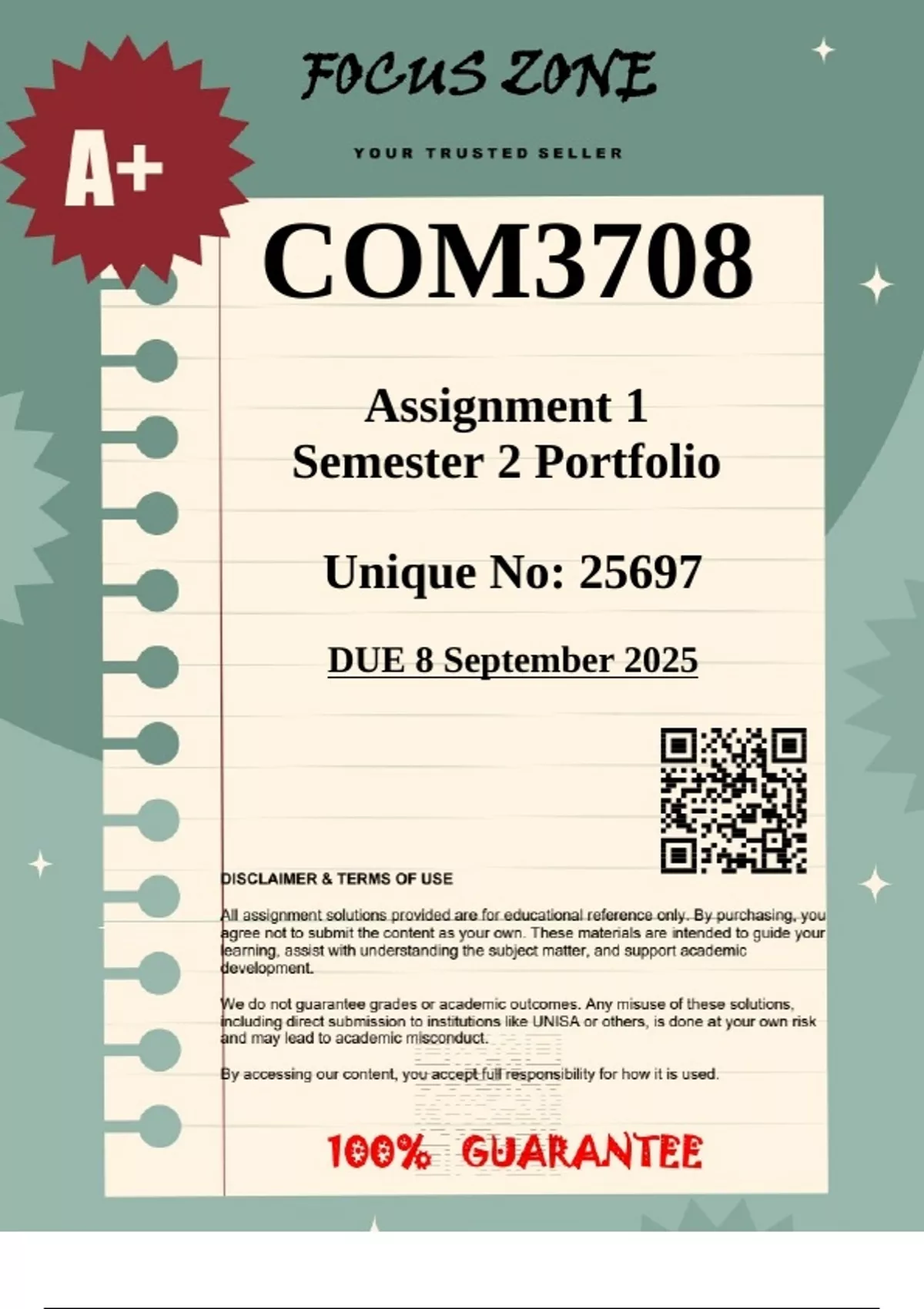 COM3708 Assignment 1 Semester 2 Portfolio (25697)|COMPLETE ANSWERS|- DUE 8 September 2025