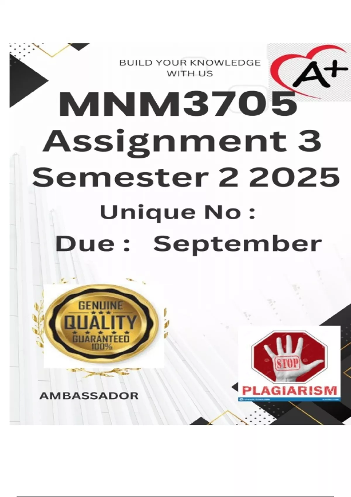 MNM3705 Assignment 3 PORTFOLIO (COMPLETE ANSWERS) Semester 2 2025 - DUE September 2025; 100% TRUSTED Complete, trusted solutions and explanations.