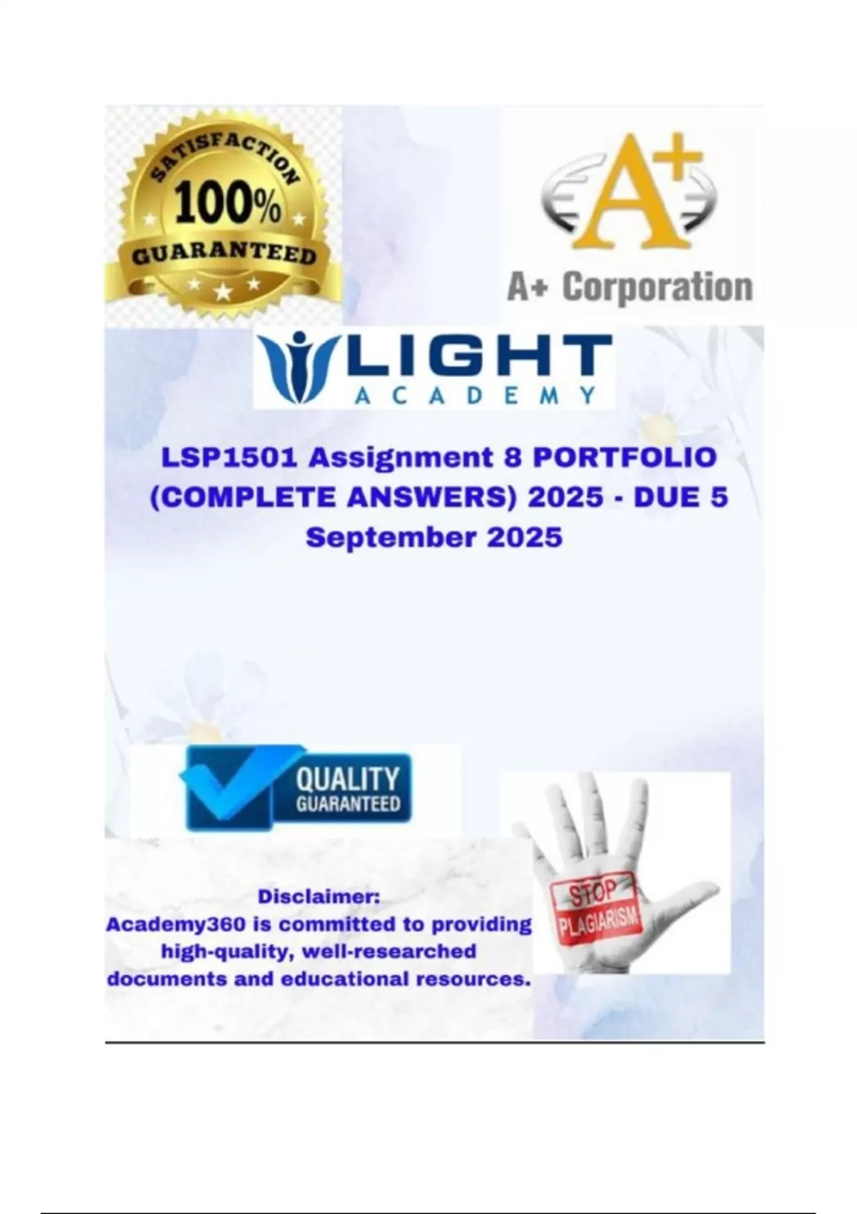 LSP1501 Assignment 8 PORTFOLIO (COMPLETE ANSWERS) 2025 - DUE 5 September 2025 ;100% trusted ,comprehensive and complete reliable solution with clear explanation