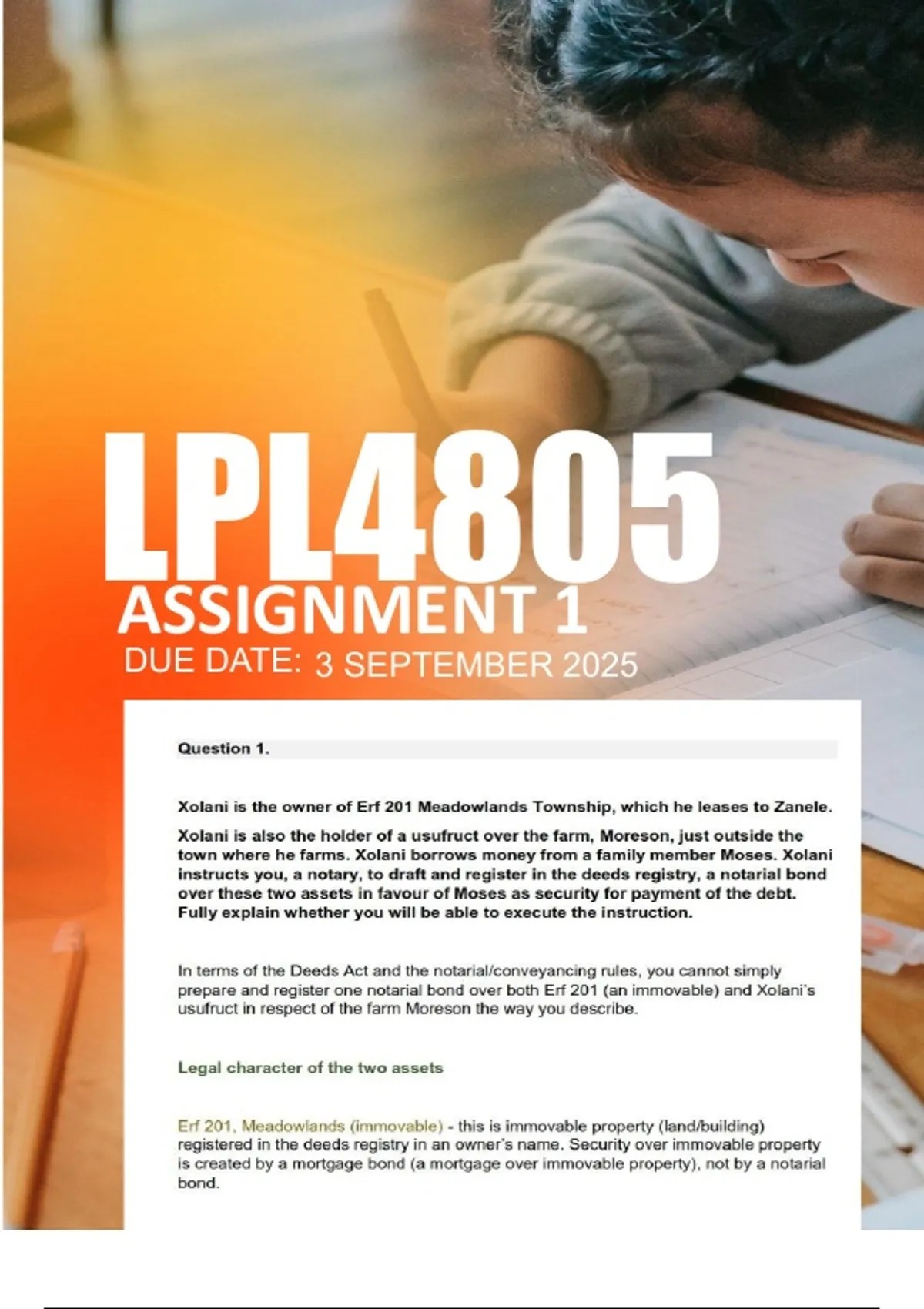 assets in favour of Moses as security for payment of the debt. Fully explain whether you