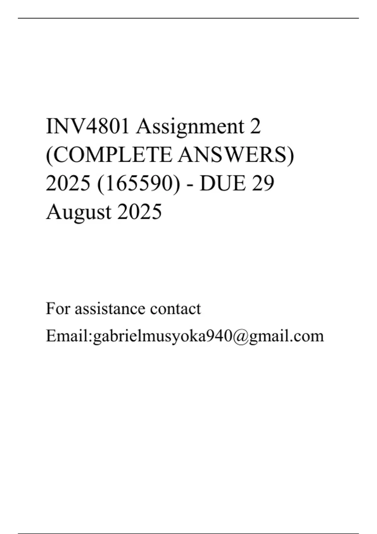 INV4801 Assignment 2 (COMPLETE ANSWERS) 2025 (165590) - DUE 29 August 2025