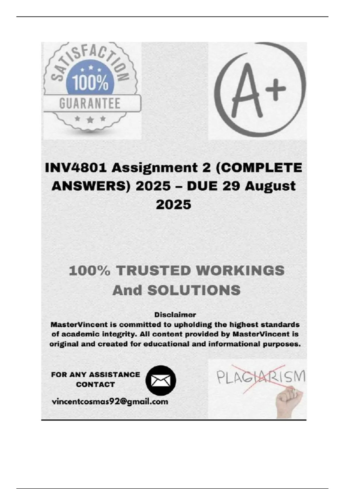 2025 – DUE 29 August 2025; 100% correct solutions