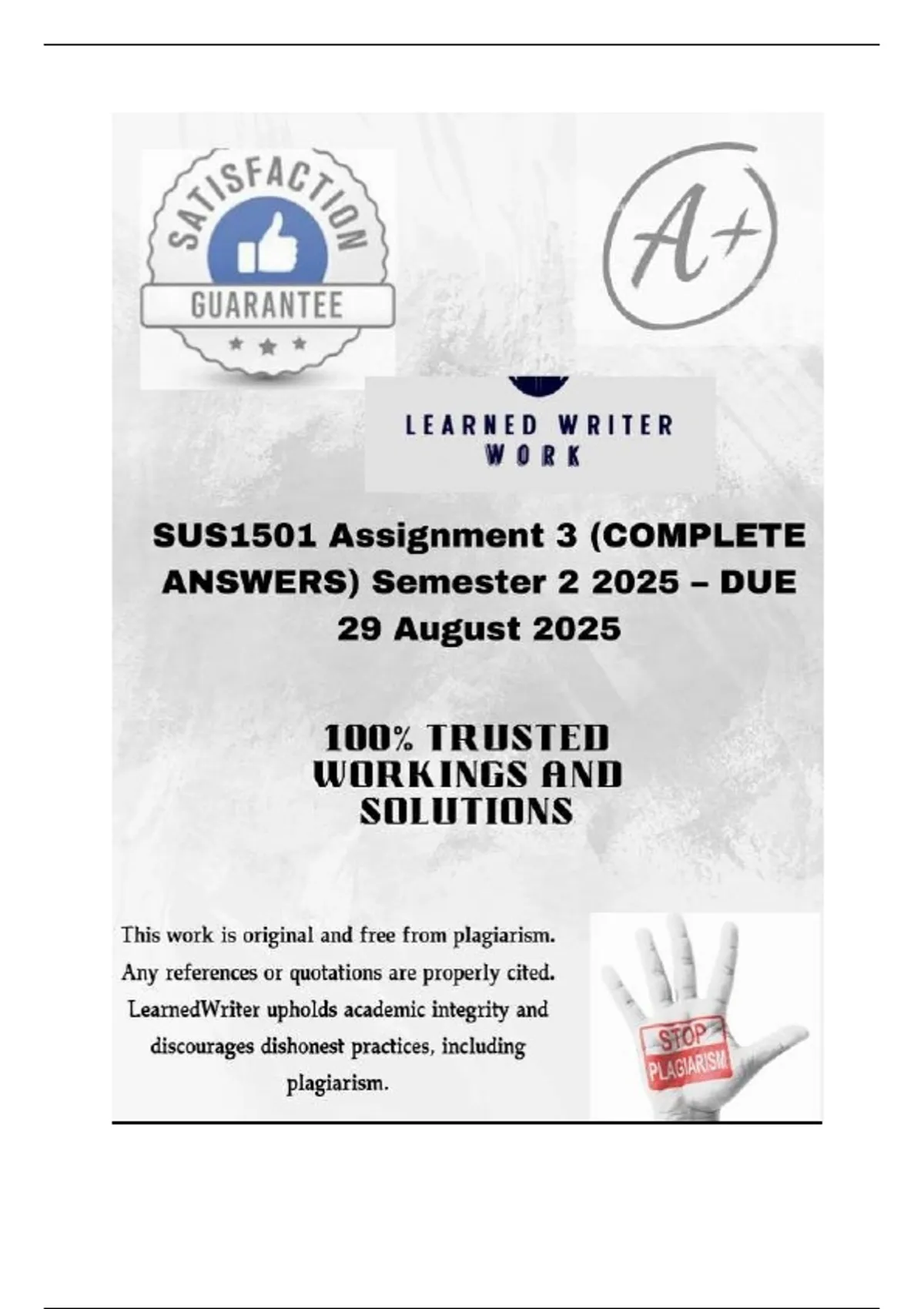 , SUS1501 Assignment 3 (COMPLETE ANSWERS) Semester 2 2025