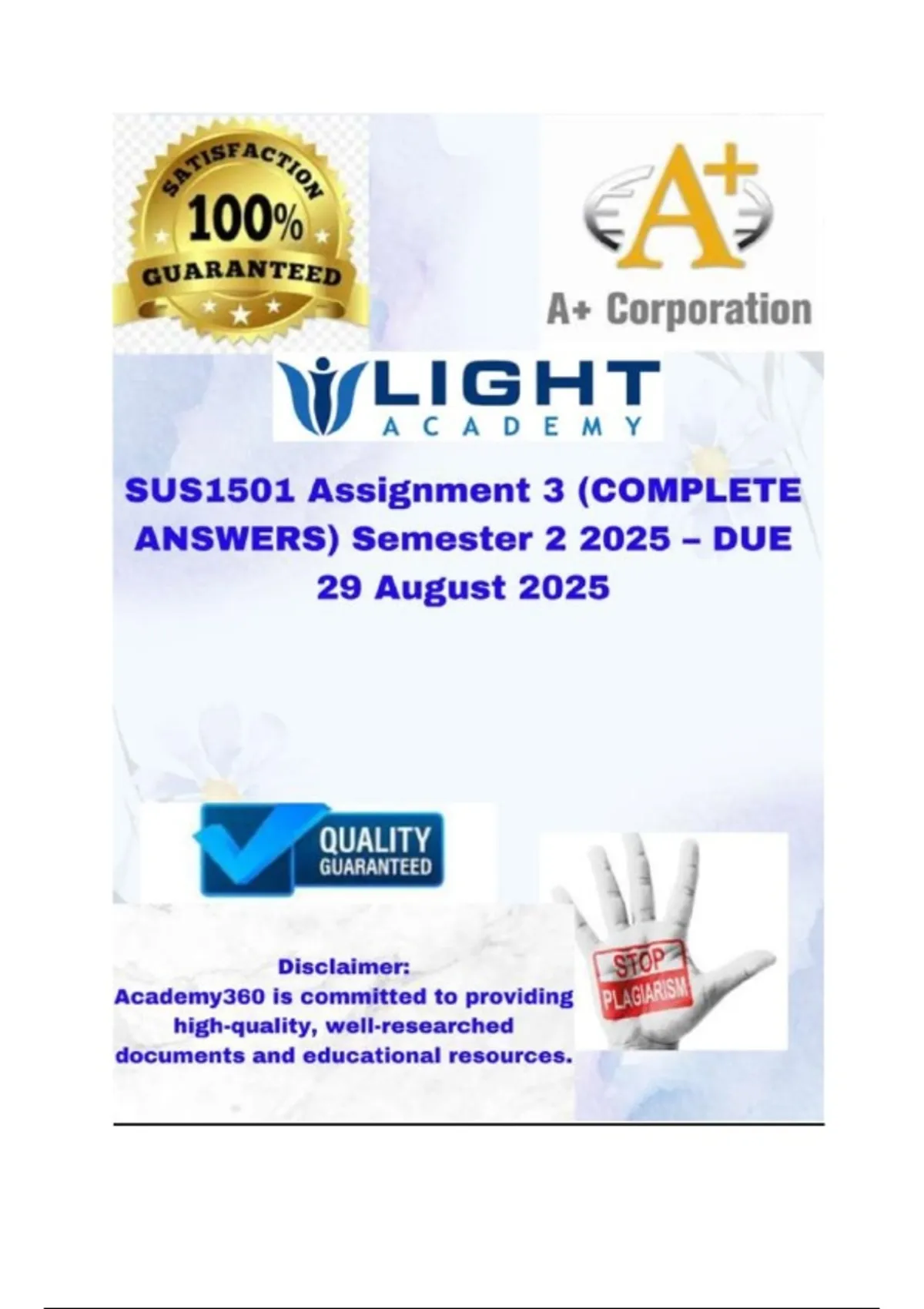 SUS1501 Assignment 3 (COMPLETE ANSWERS) Semester 2 2025 – DUE 29 August 2025; 100% trusted ,comprehensive and complete reliable solution with clear explanation