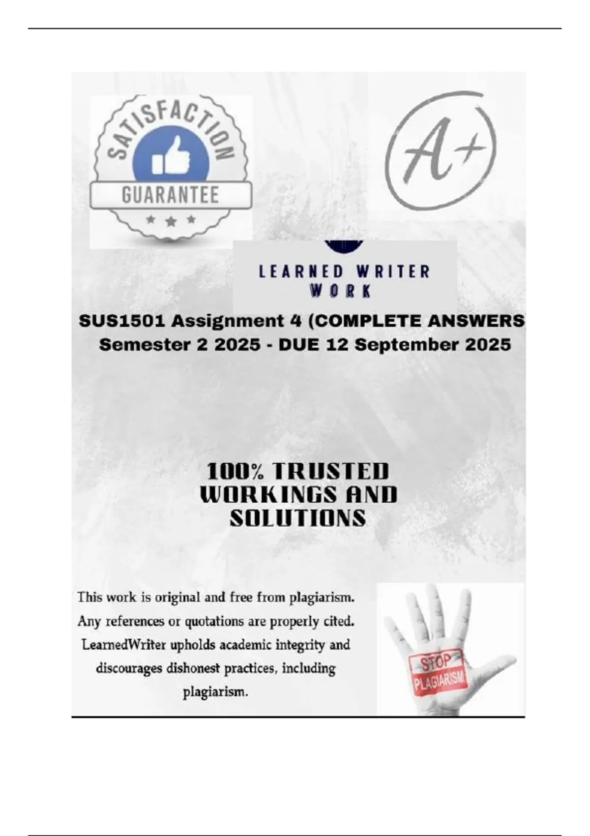 , SUS1501 Assignment 4 (COMPLETE ANSWERS) Semester 2 2025