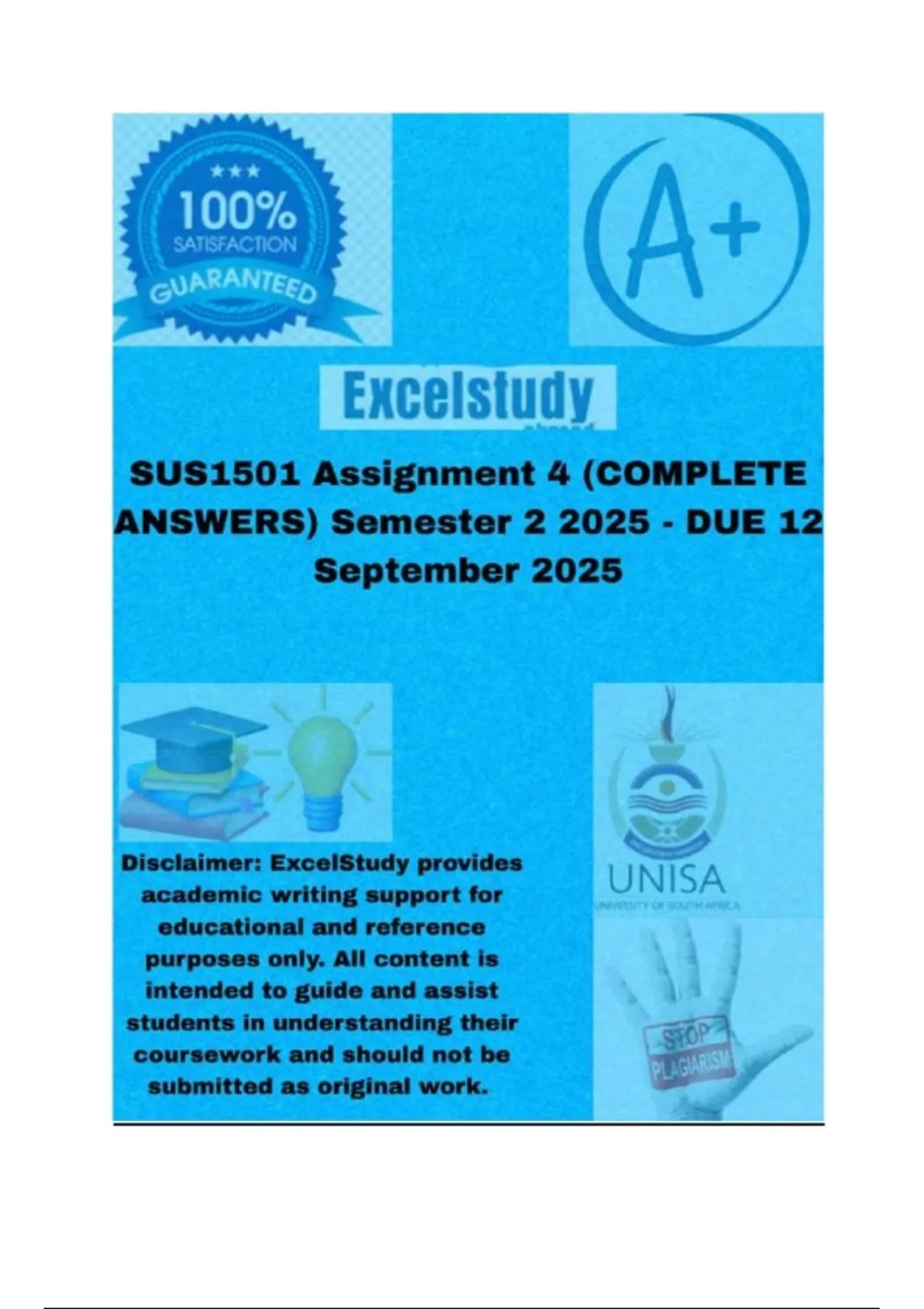 SUS1501 Assignment 4 (COMPLETE ANSWERS) Semester 2 2025 - DUE 12 September 2025;100% trusted ,comprehensive and complete reliable solution with clear explanation