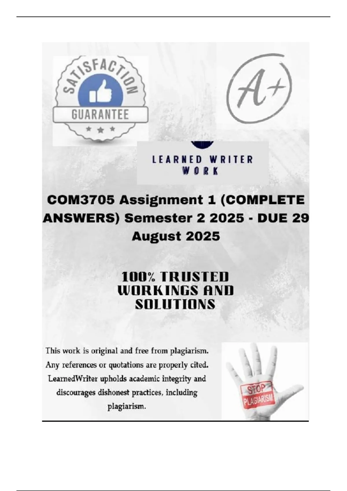 ,COM3705 Assignment 1 (COMPLETE ANSWERS) Semester 2