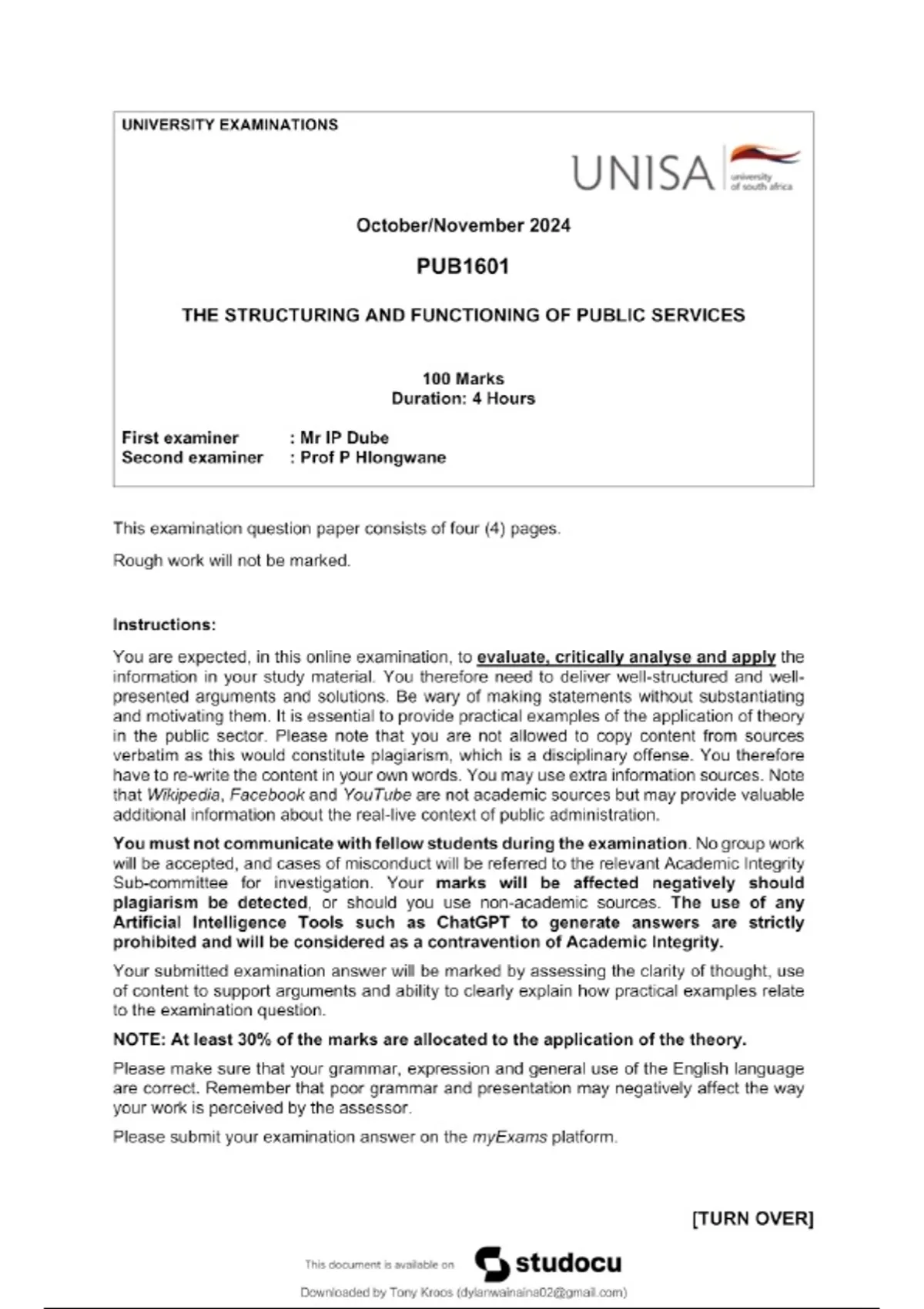 PUB1601 PAST EXAM QUESTIONS & ANSWERS 2025