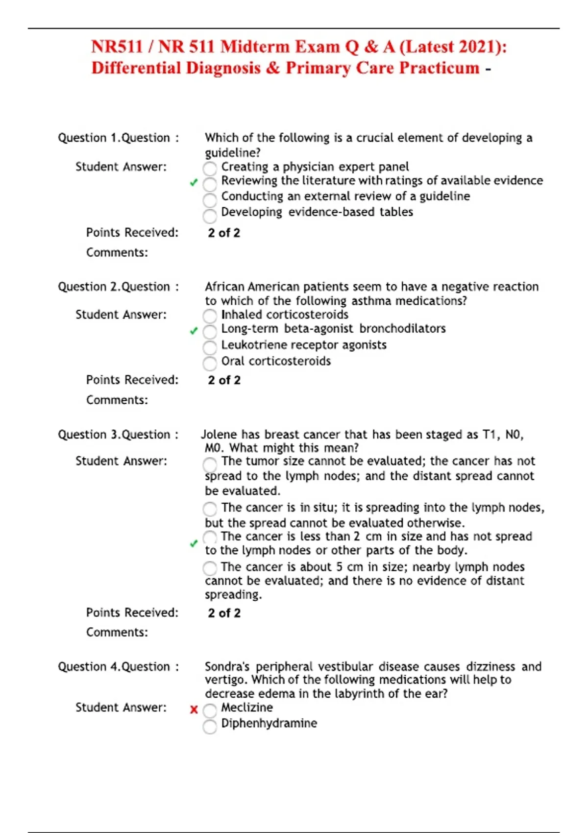 Nr 511 midterm exam q a latest 2021 differential diagnosis primary care practicum chamberlain