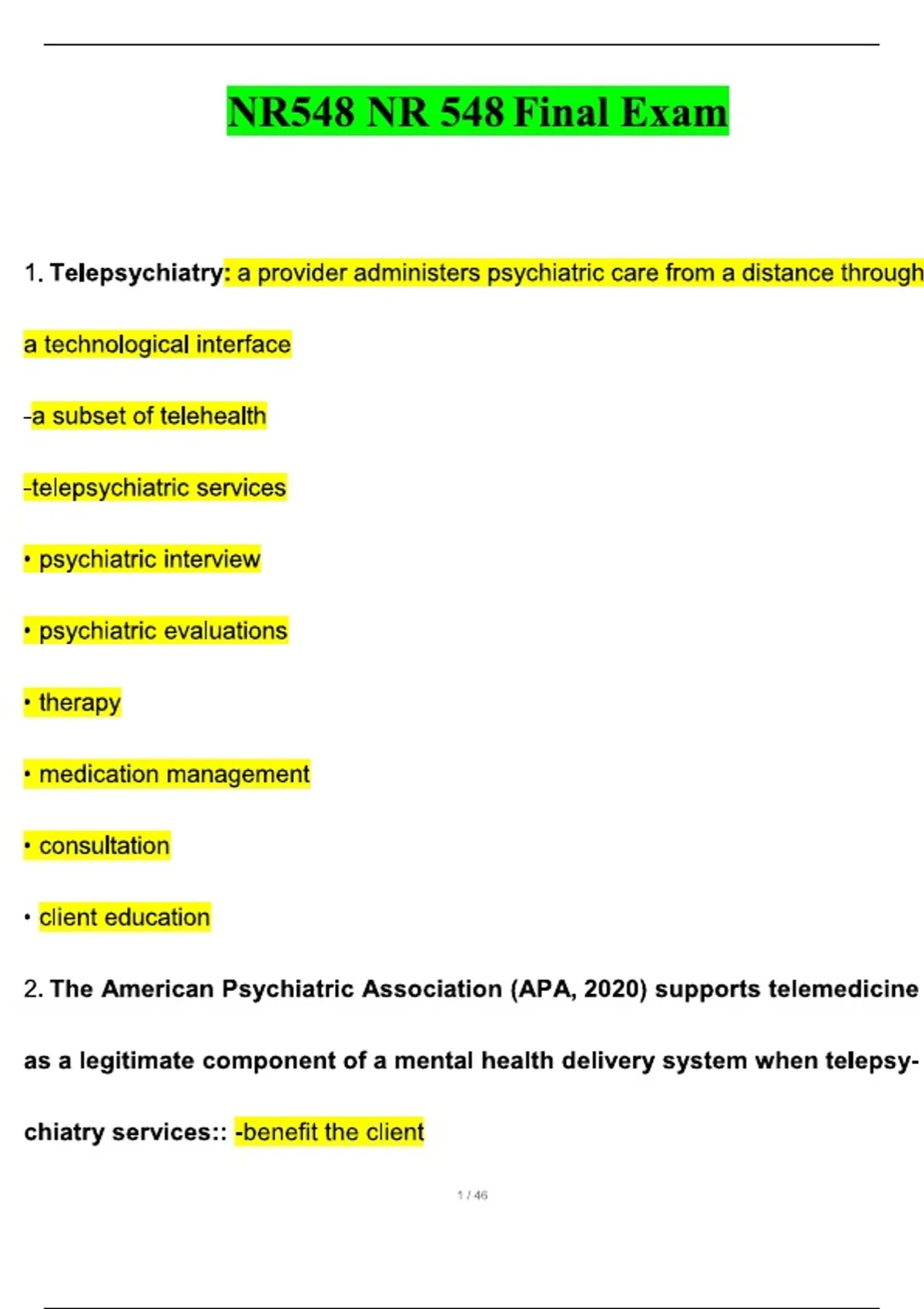 NR548 NR 548 Final Exam questions and answers