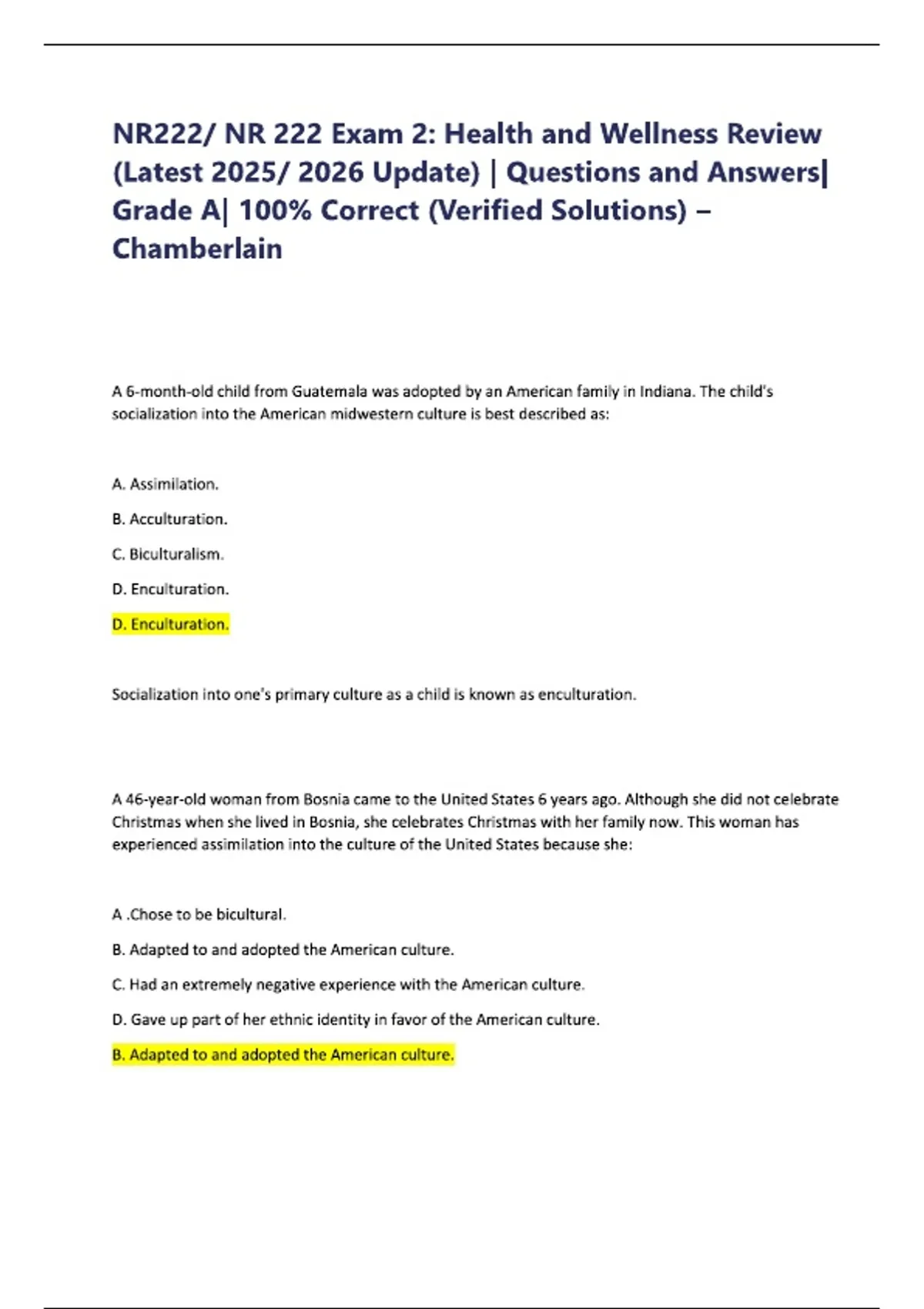 NR 222 Exam 2 Health and Wellness Review (Latest Update)