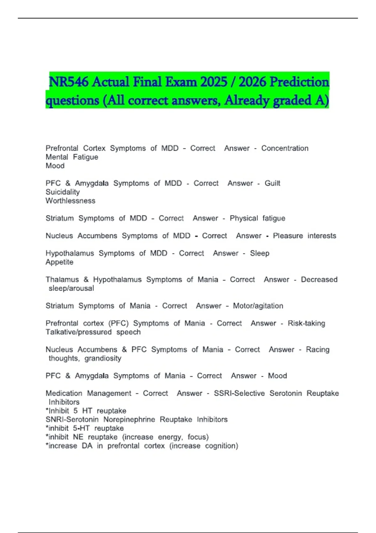 nr546 actual final exam prediction que