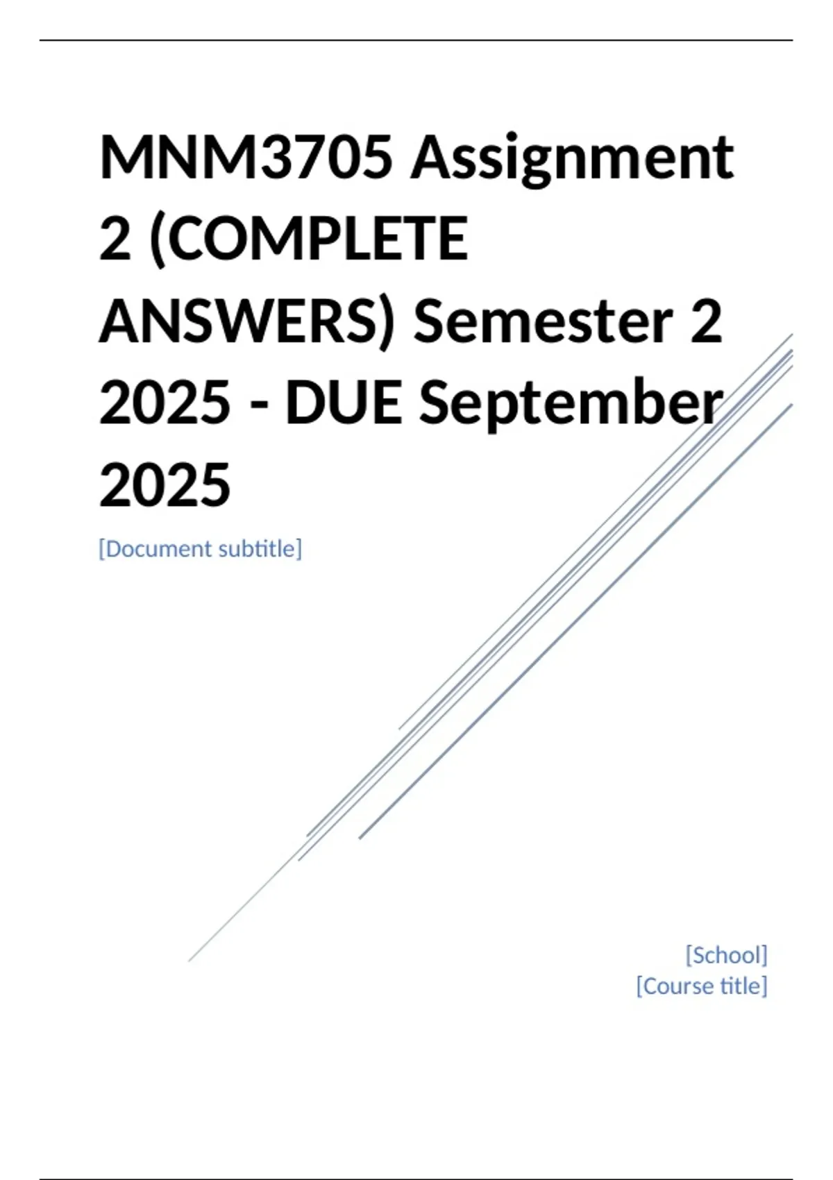 MNM3705 Assignment 2 (COMPLETE ANSWERS) Semester 2 2025 - DUE September 2025; 100%