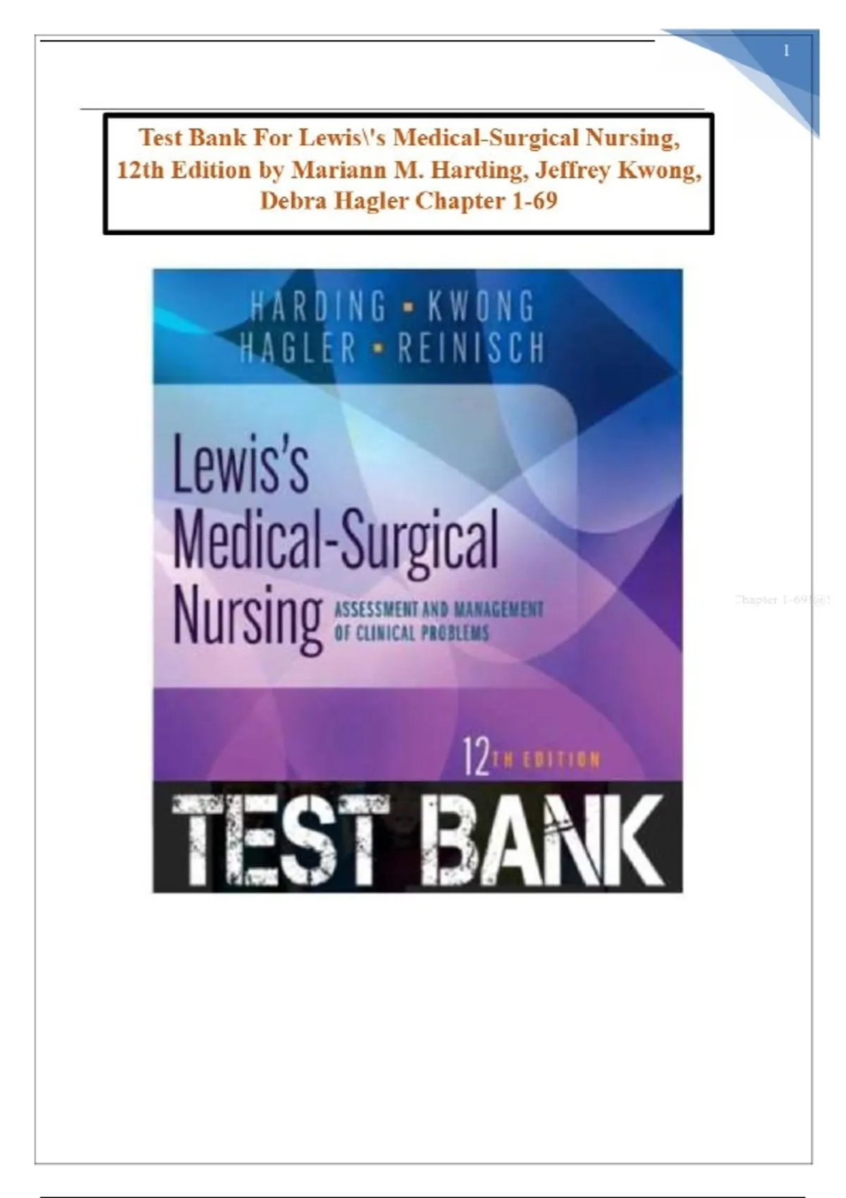 1 TEST BANK FOR LEWIS'S MEDICAL-SURGICAL NURSING, 12TH EDITION BY MARIANN M. HARDING, JEFFREY KWONG, DEBRA HAGLER CHAPTER 1-69!*#&(*&#)(!(*^@$(*(&@(*$#@(&*^&#(*&@$)*&@#)*(&@)*@&U(@(@#