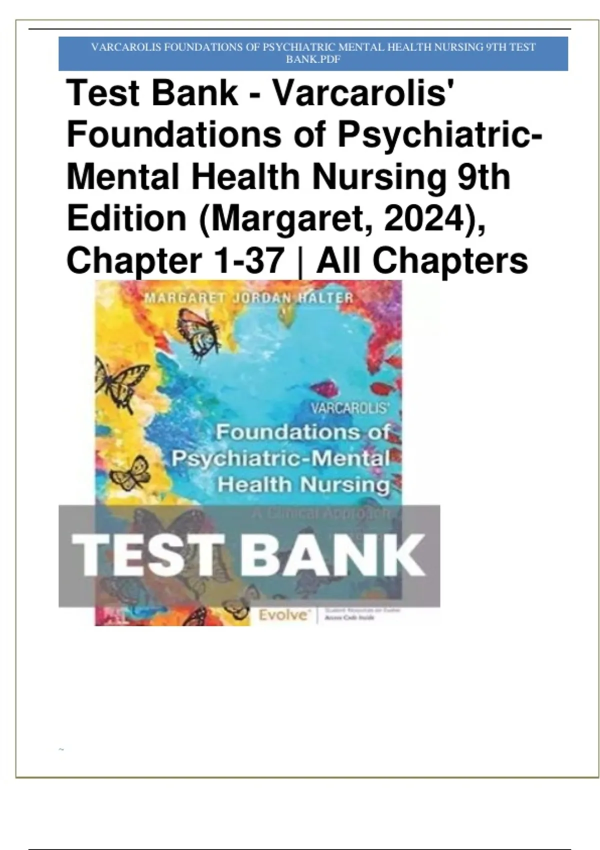 , VARCAROLIS FOUNDATIONS OF PSYCHIATRIC MENTAL HEALTH NURSING 9TH TEST