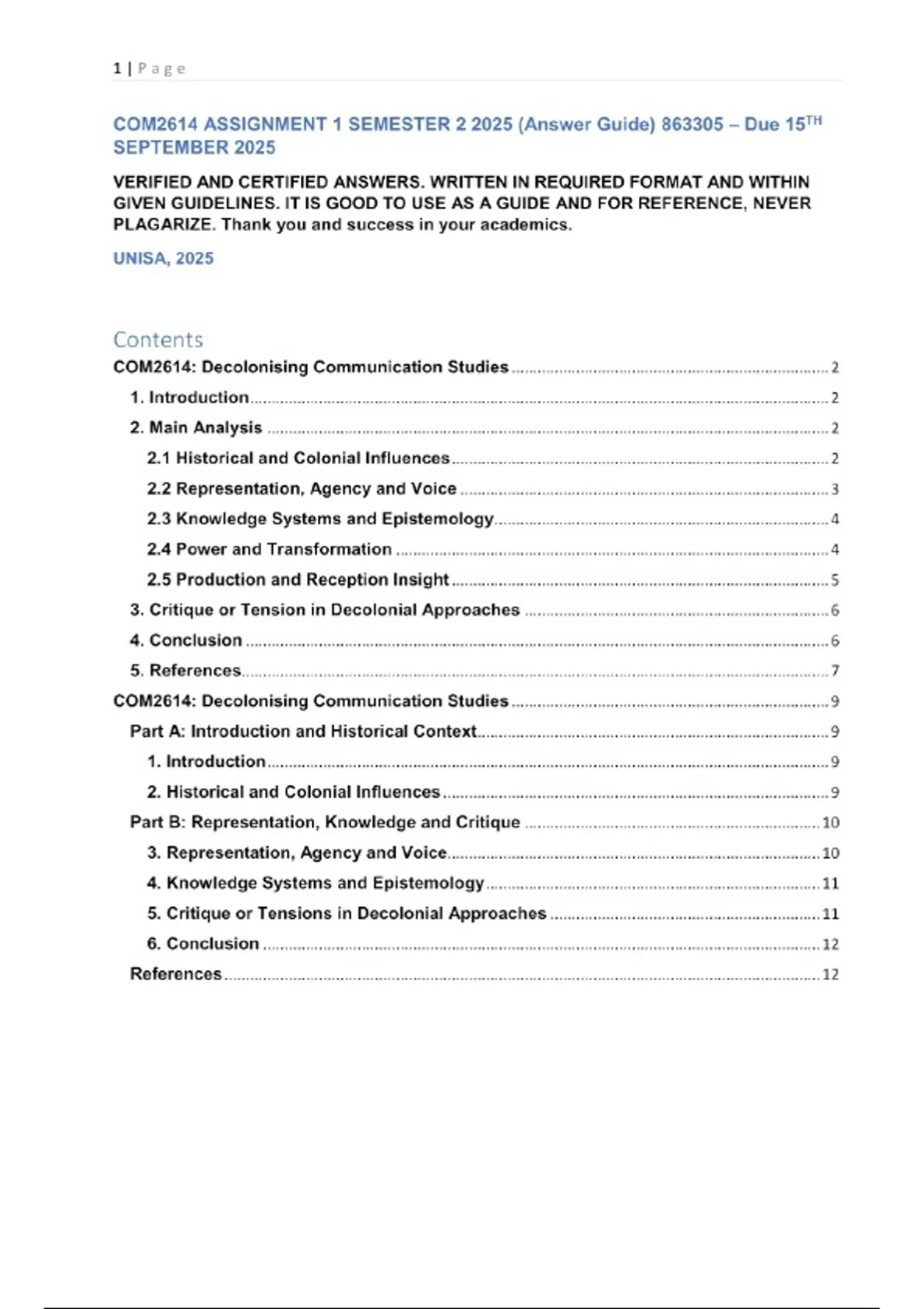 COM2614 ASSIGNMENT 1 SEMESTER 2 2025 Questions with certified answers