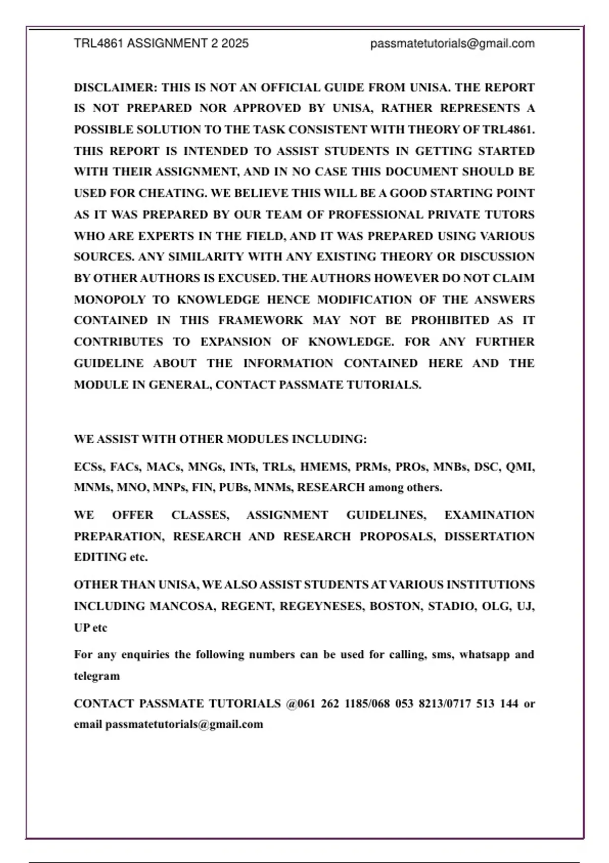 DISCLAIMER: THIS IS NOT AN OFFICIAL GUIDE FROM UNISA. THE REPORT