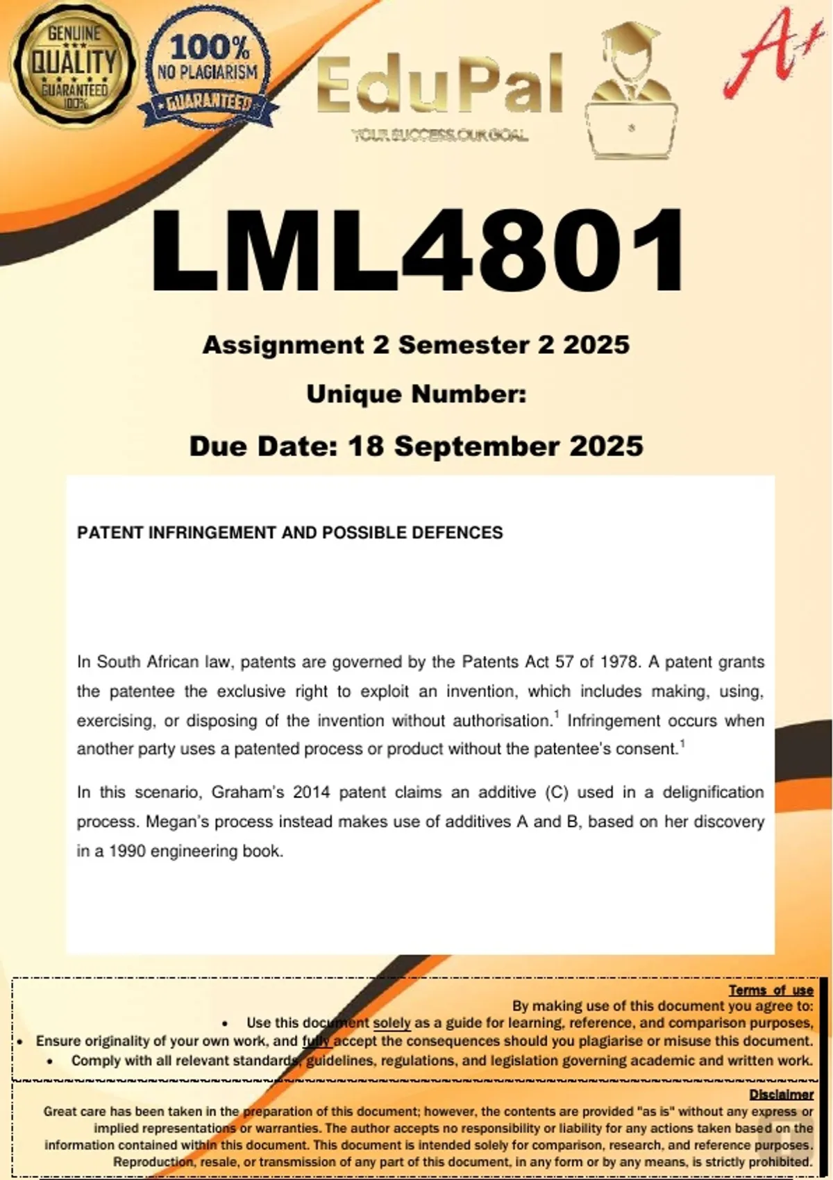 PATENT INFRINGEMENT AND POSSIBLE DEFENCES