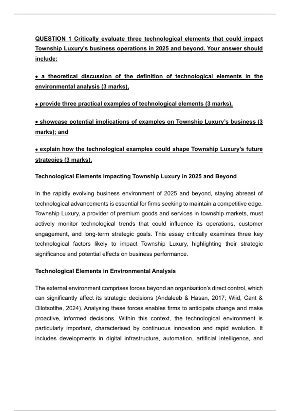 technological factors likely to impact Township Luxury, highlighting their strategic