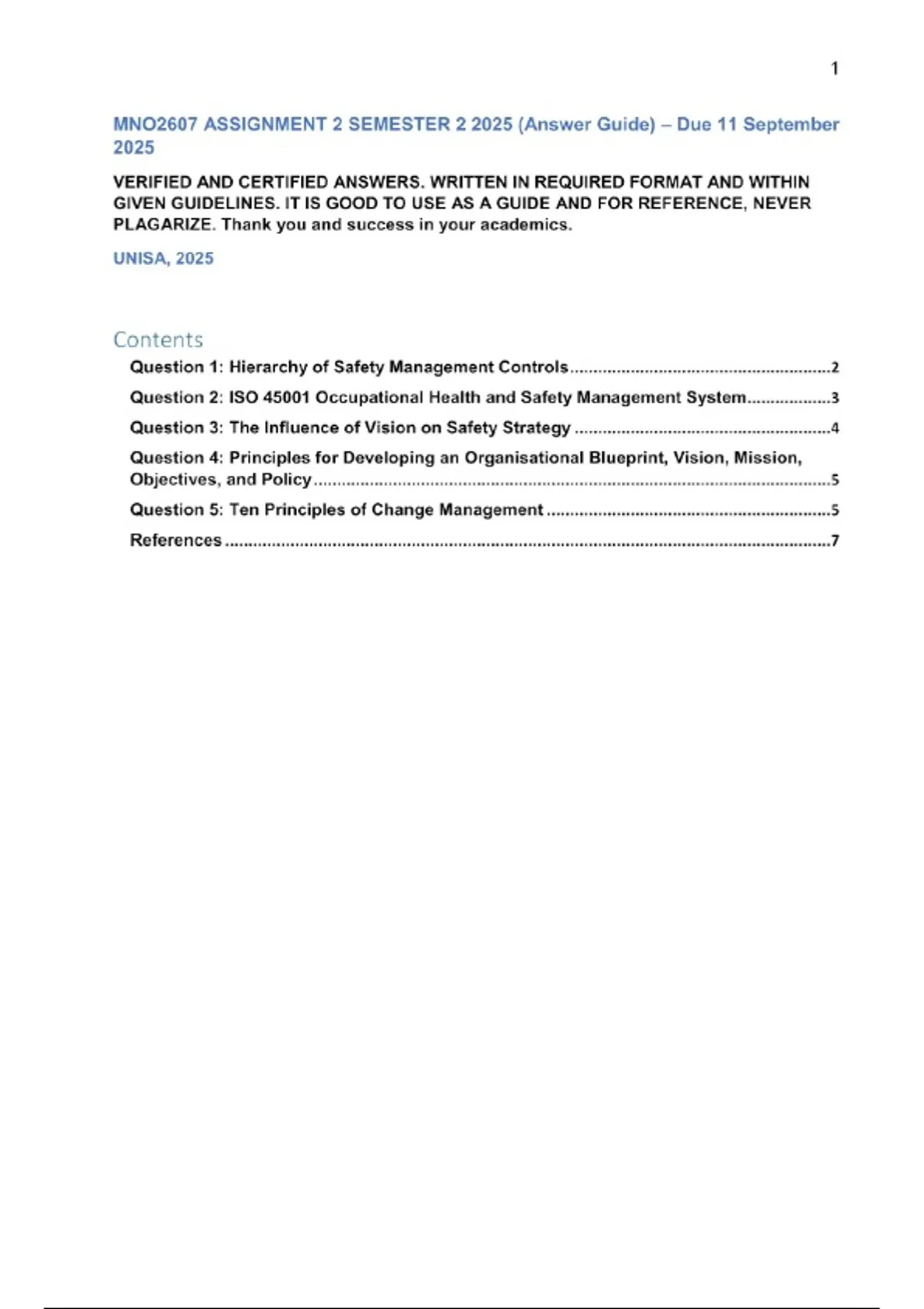 MNO2607 ASSIGNMENT 2 SEMESTER 2 2025 Questions with certified answers
