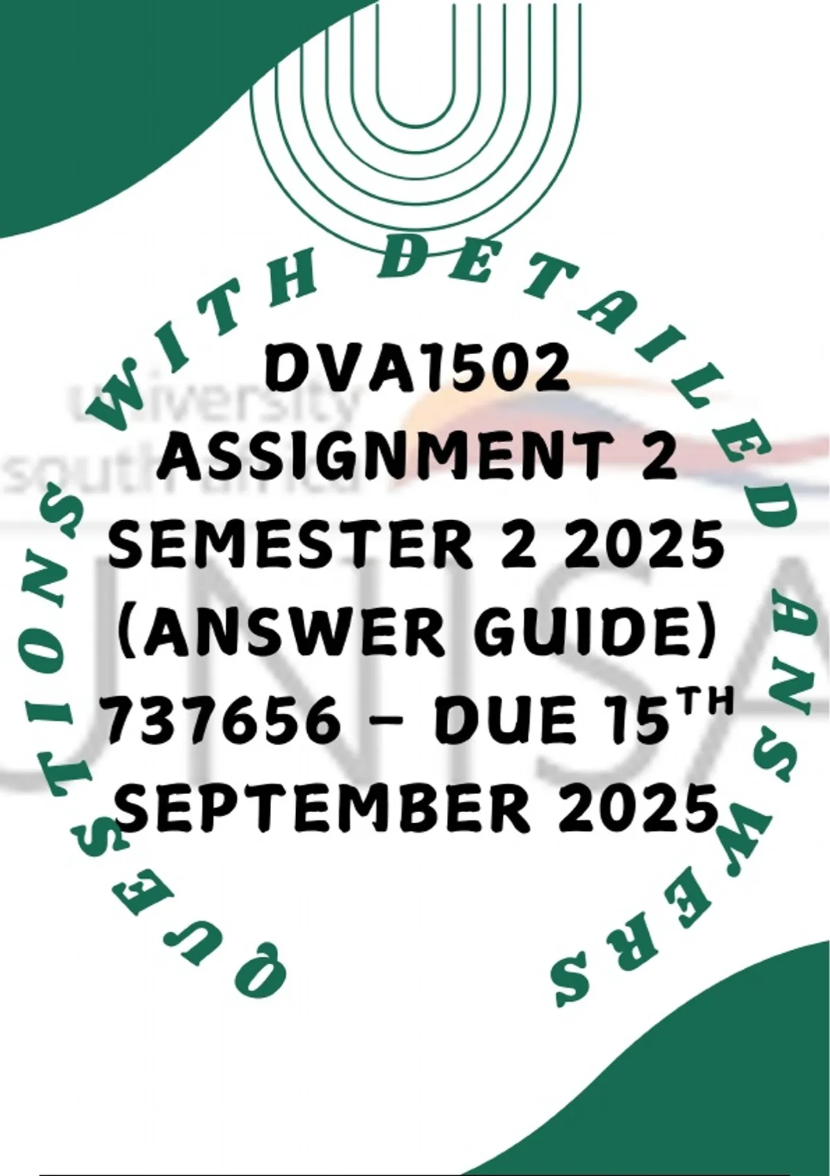 DVA1502 ASSIGNMENT 2 SEMESTER 2 2025 (Answer Guide) 737656 – Due 15TH September 2025
