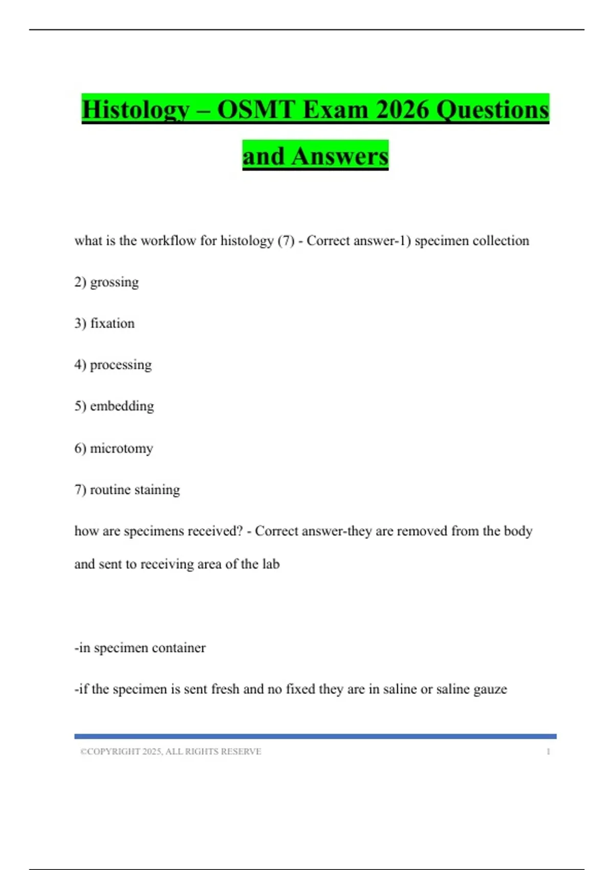 what is the workflow for histology (7) - Correct answer-1) specimen collection