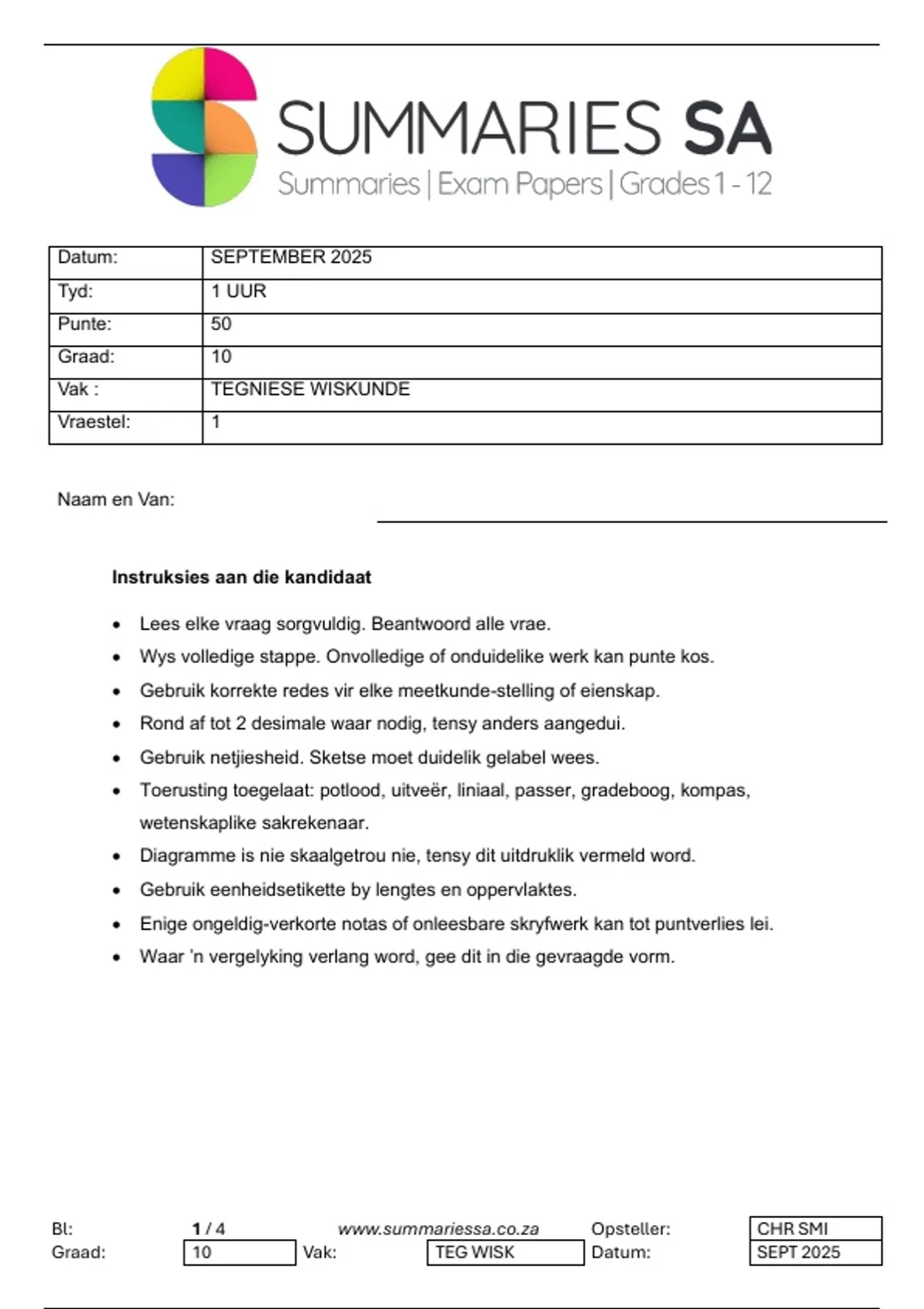 Graad: 10 Vak: TEG WISK Datum: SEPT 2025