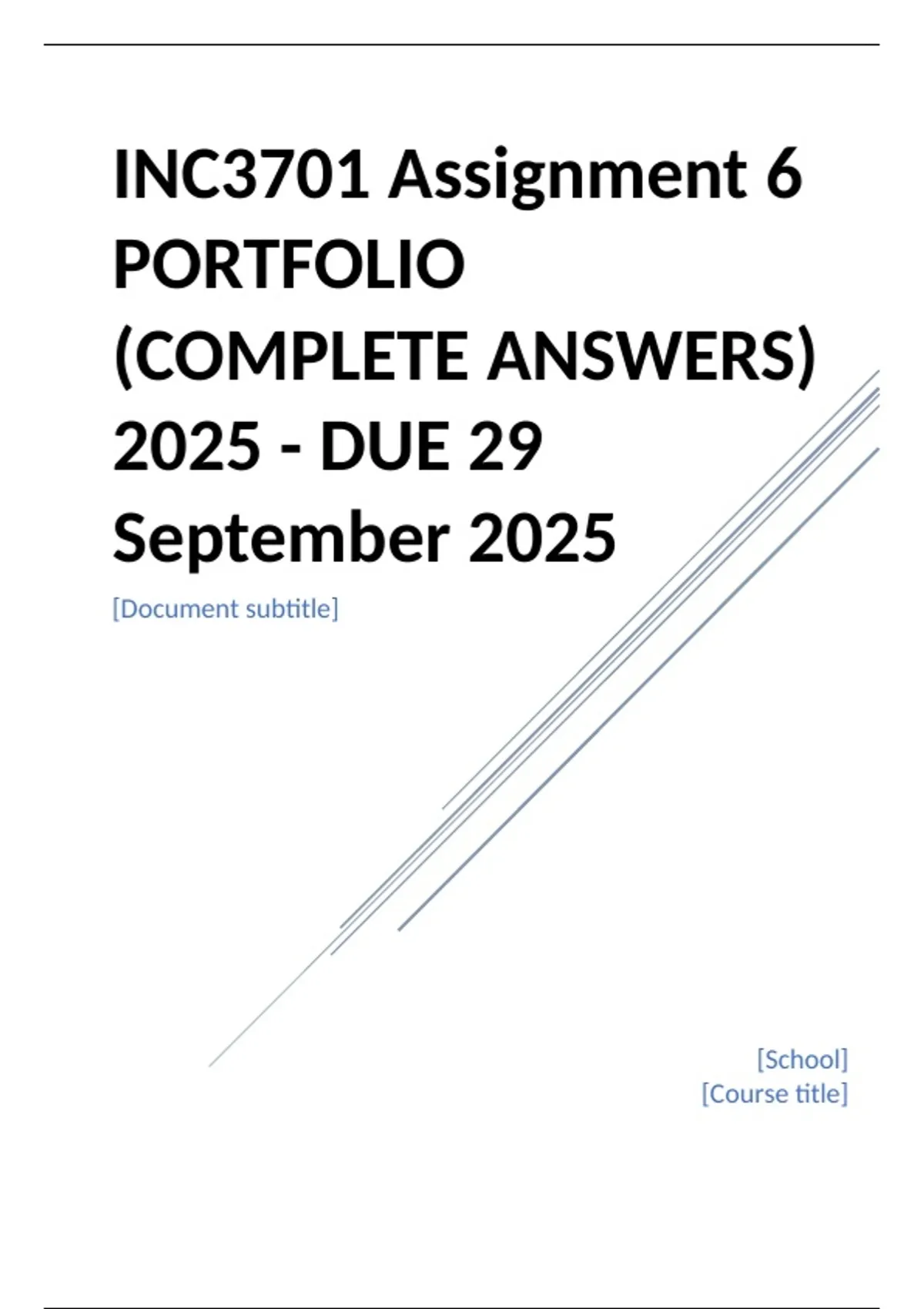 INC3701 Assignment 6 PORTFOLIO (COMPLETE ANSWERS) 2025 - DUE 29 September 2025;