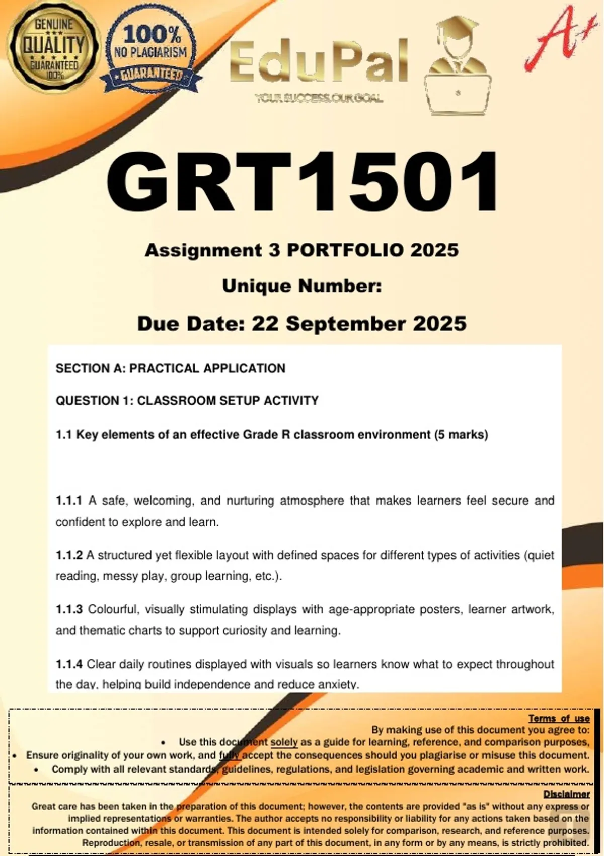 1.1 Key elements of an effective Grade R classroom environment (5 marks)