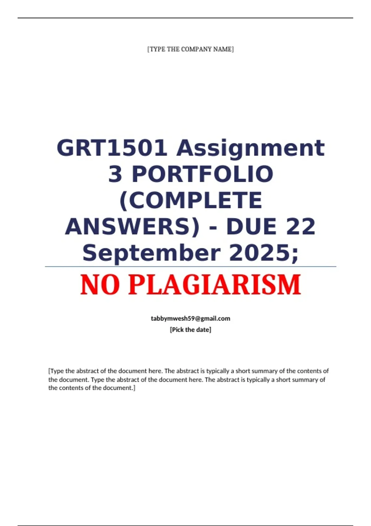 GRT1501 Assignment 3 PORTFOLIO (COMPLETE ANSWERS) - DUE 22